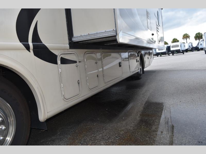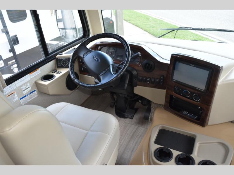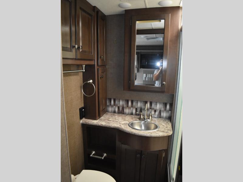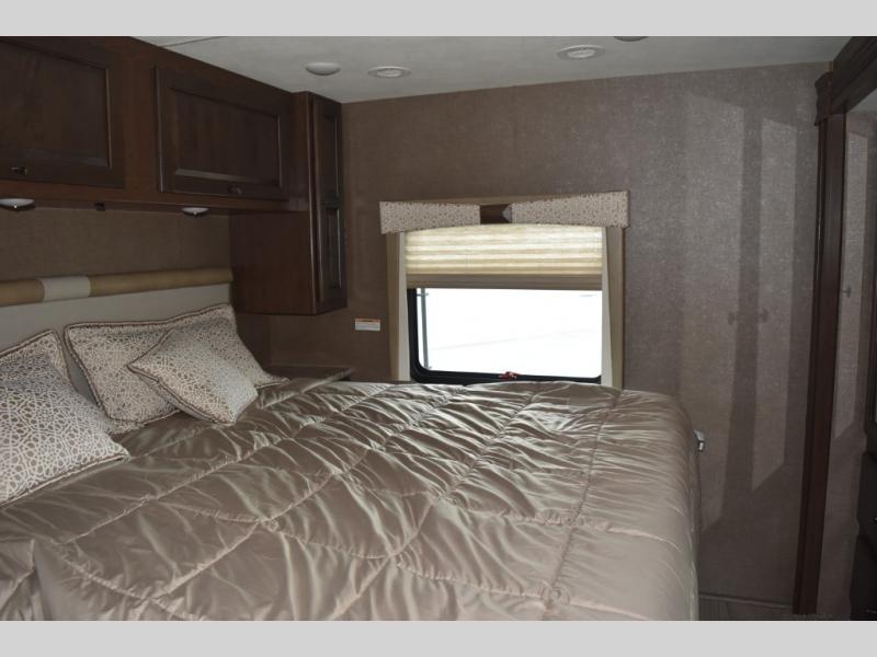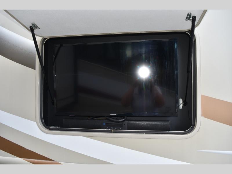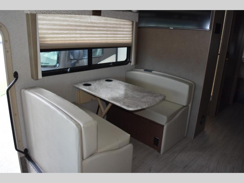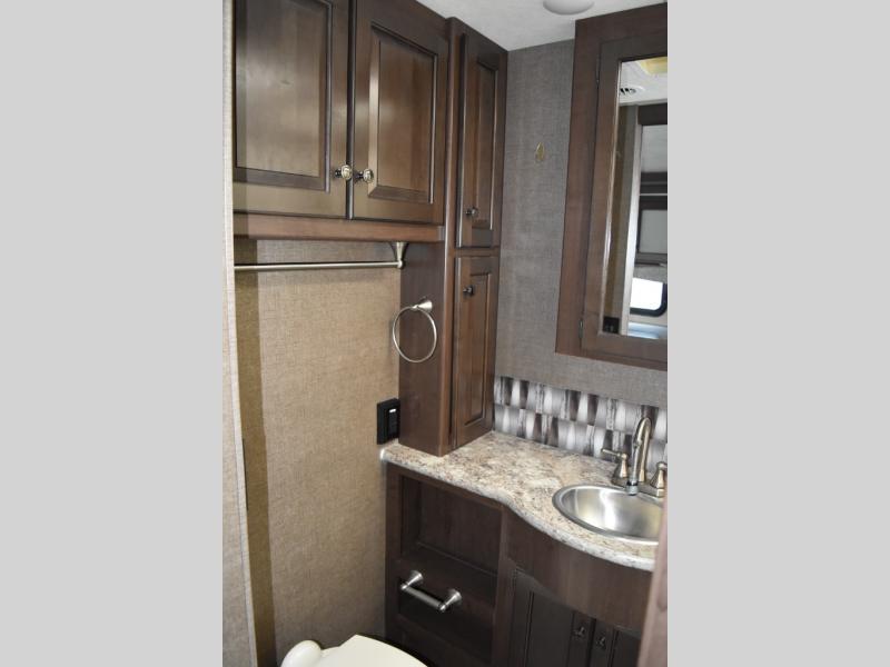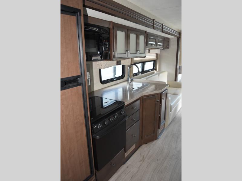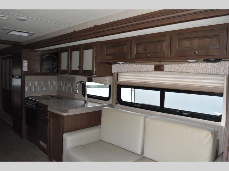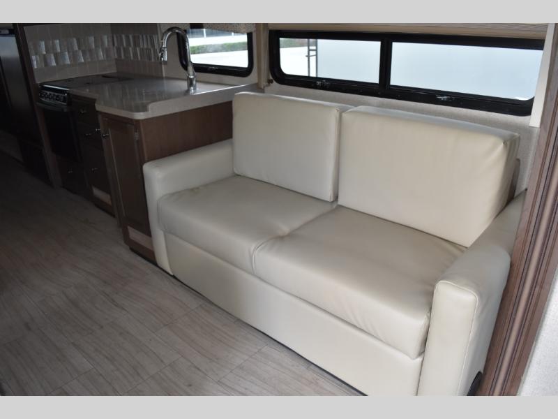 You will find there is much to love about the Windsport class A gas coaches, whether you are out for a long road trip across the country, or a weekend reunion with family. All Windsport models feature Leatherette furniture, solid surface kitchen countertops, and raised panel upper cabinet doors with nickel finish hardware and glass inserts on select doors. With the swivel and reclining captain's chairs featured in these coaches, you can easily bring them into the conversation area in the living space once parked. Each unit includes a dash workstation with 110-volt and 12-volt outlets at the passenger side for those who need to take work with them on the road, or for those who just enjoy surfing the internet. On the outside, enjoy Robocast storage compartments, an outdoor shower, and a legless lateral power awning with integrated LED lighting. Make any Windsport class A gas coach by Thor Motor Coach your new home-away-from-home today!