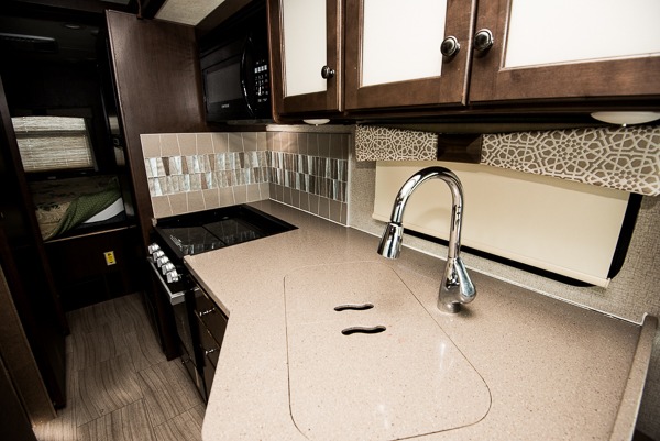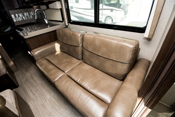 You will find there is much to love about the Windsport class A gas coaches, whether you are out for a long road trip across the country, or a weekend reunion with family. All Windsport models feature Leatherette furniture, solid surface kitchen countertops, and raised panel upper cabinet doors with nickel finish hardware and glass inserts on select doors. With the swivel and reclining captain's chairs featured in these coaches, you can easily bring them into the conversation area in the living space once parked. Each unit includes a dash workstation with 110-volt and 12-volt outlets at the passenger side for those who need to take work with them on the road, or for those who just enjoy surfing the internet. On the outside, enjoy Robocast storage compartments, an outdoor shower, and a legless lateral power awning with integrated LED lighting. Make any Windsport class A gas coach by Thor Motor Coach your new home-away-from-home today!