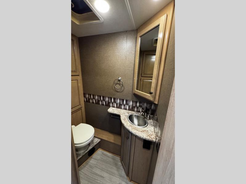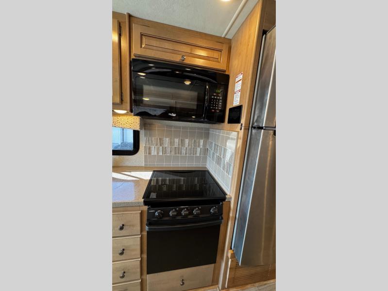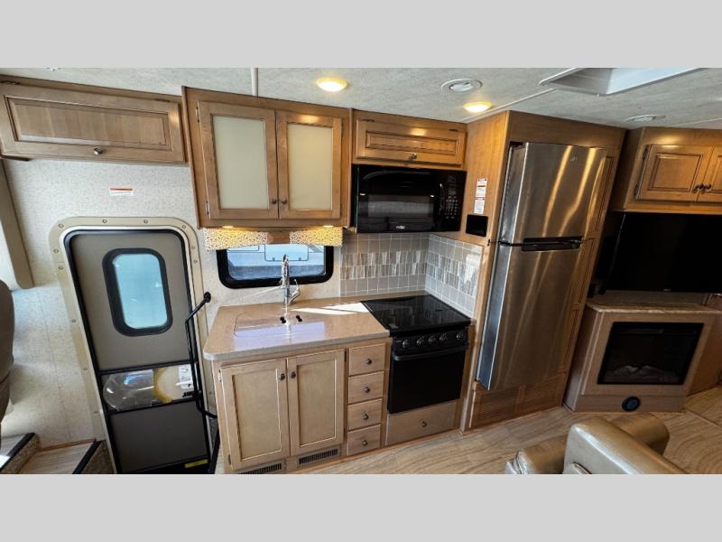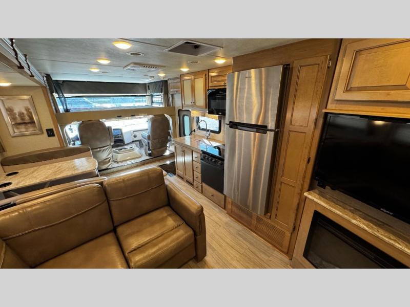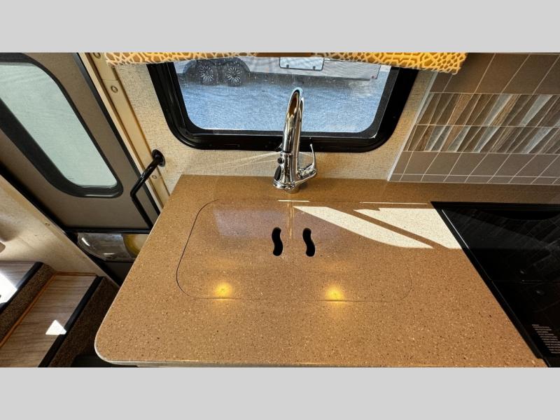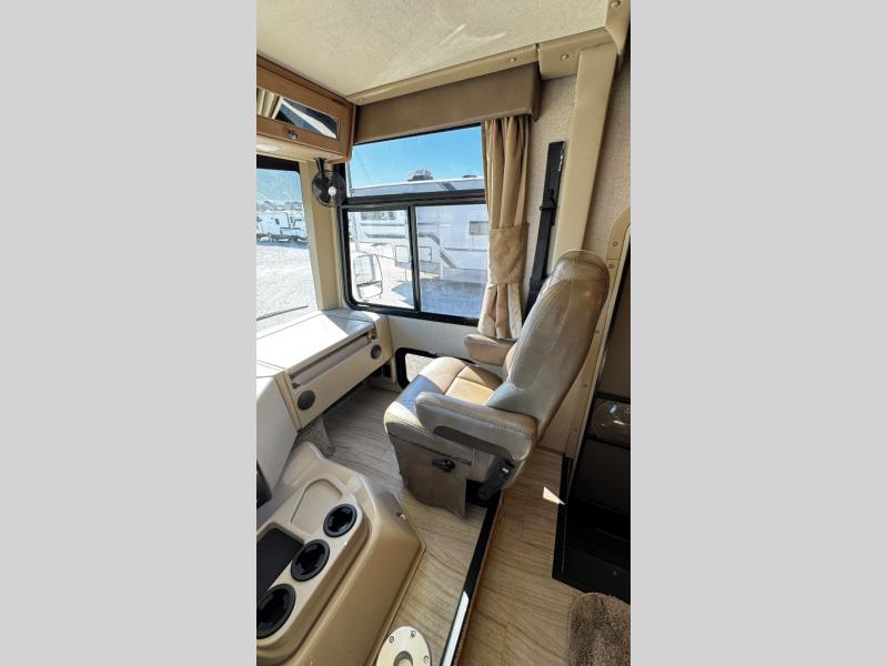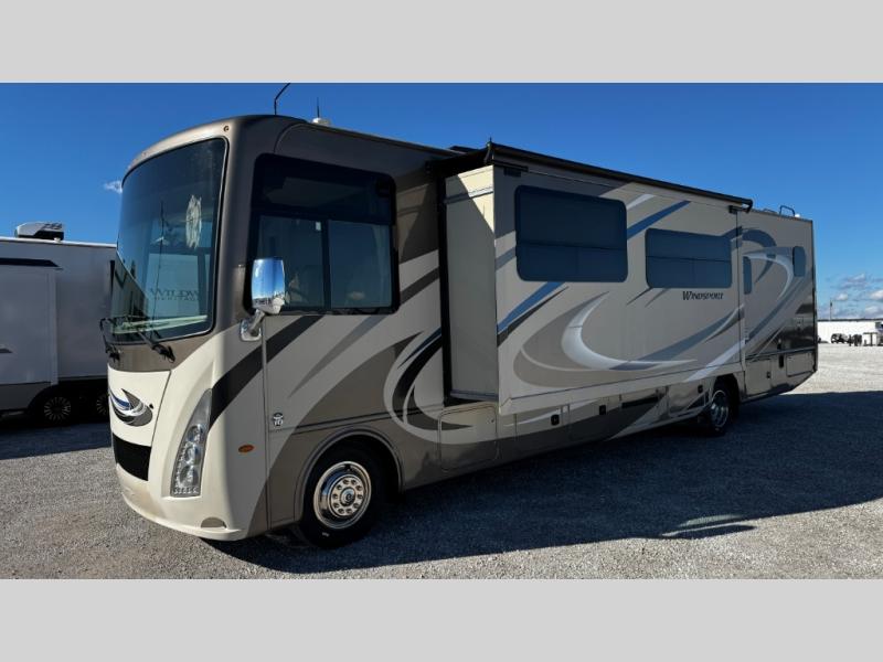 You will find there is much to love about the Windsport class A gas coaches, whether you are out for a long road trip across the country, or a weekend reunion with family. All Windsport models feature Leatherette furniture, solid surface kitchen countertops, and raised panel upper cabinet doors with nickel finish hardware and glass inserts on select doors. With the swivel and reclining captain's chairs featured in these coaches, you can easily bring them into the conversation area in the living space once parked. Each unit includes a dash workstation with 110-volt and 12-volt outlets at the passenger side for those who need to take work with them on the road, or for those who just enjoy surfing the internet. On the outside, enjoy Robocast storage compartments, an outdoor shower, and a legless lateral power awning with integrated LED lighting. Make any Windsport class A gas coach by Thor Motor Coach your new home-away-from-home today!