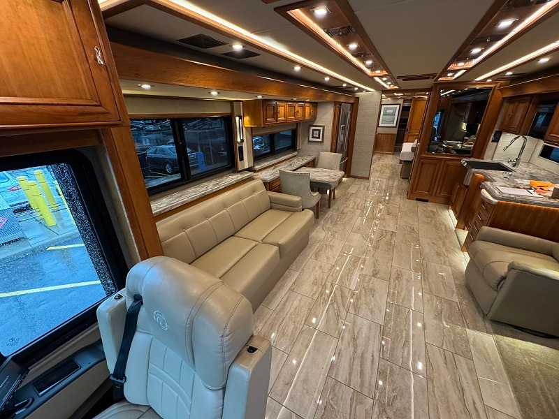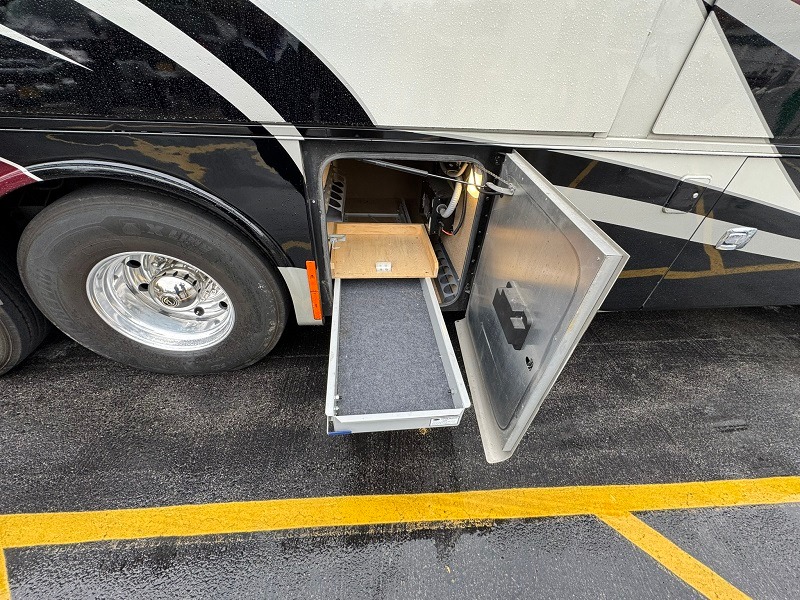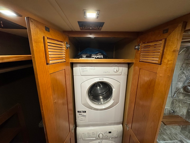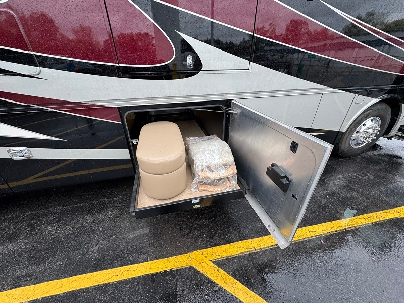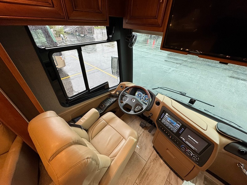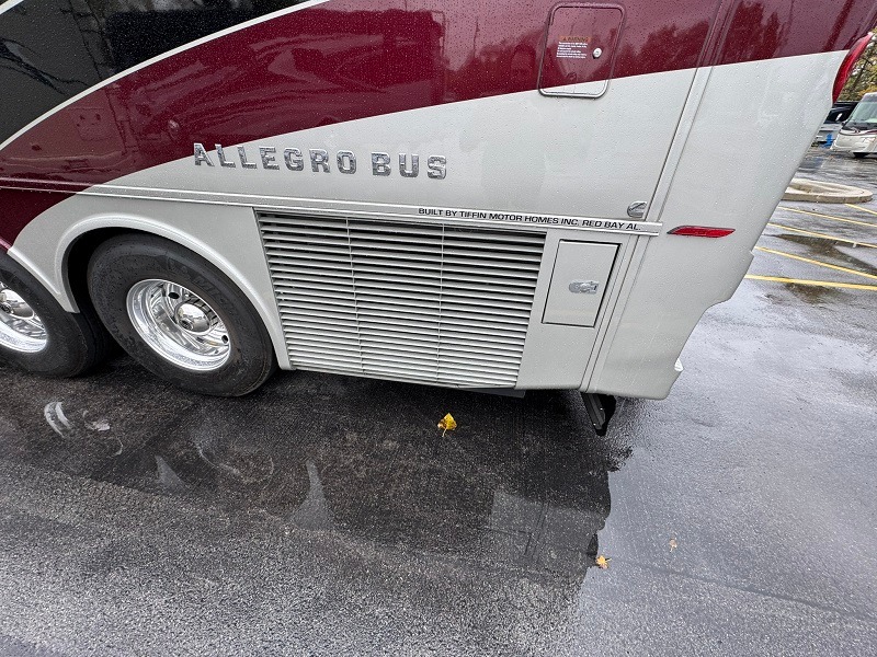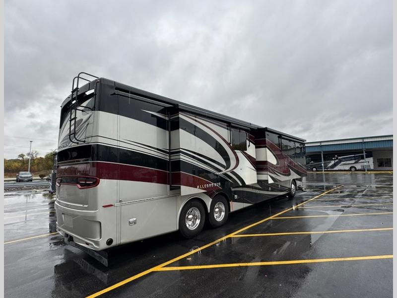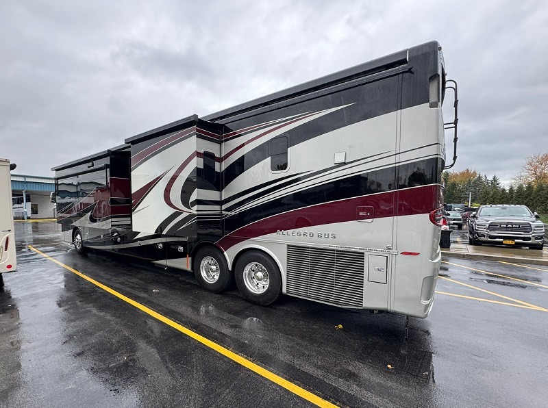 The Allegro Bus class A diesel motorhome allows you to enjoy luxury at any given campground, RV spot, or on the open road. From the low maintenance of the porcelain tile floors offering durability and elegance to the raised panel hardwood cabinet doors, the coaches provide beauty everywhere you look. The surround sound speakers, the central vacuum cleaner, and the full size pantry provide entertainment, quick clean up, and more space for non-perishables. A few key exterior features include ground effects lighting, dual pane tinted windows, a keyless entry door system for easy entrance, plus chrome heated power mirrors with remote adjustments and so much more!