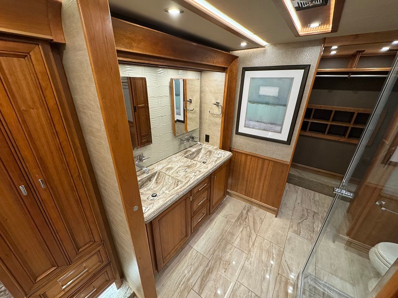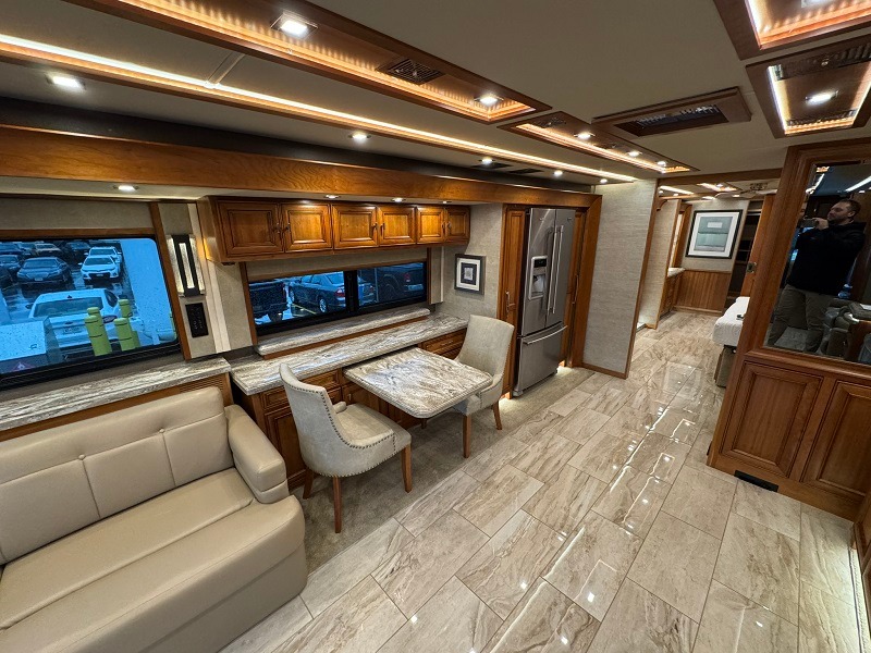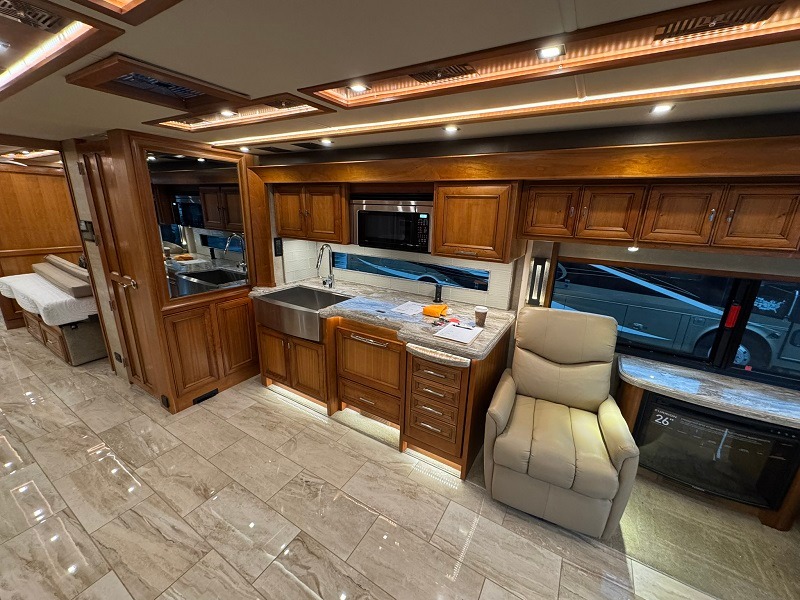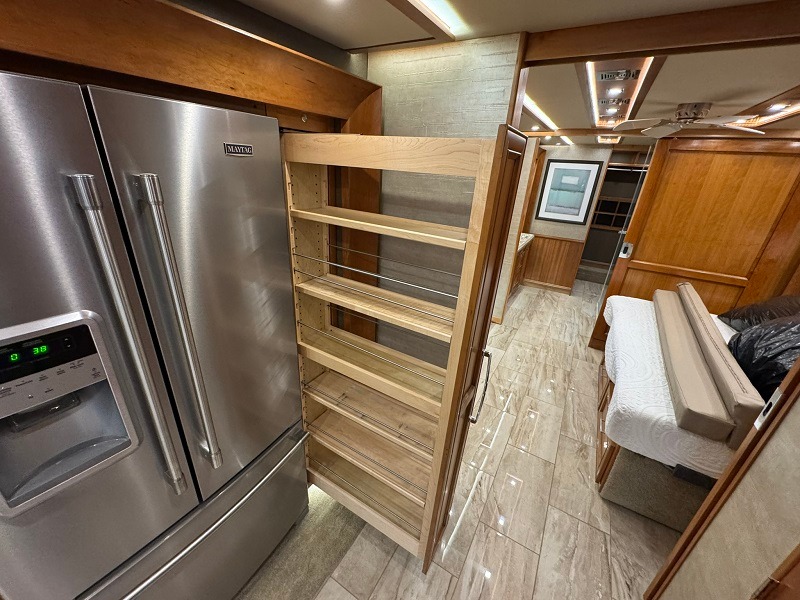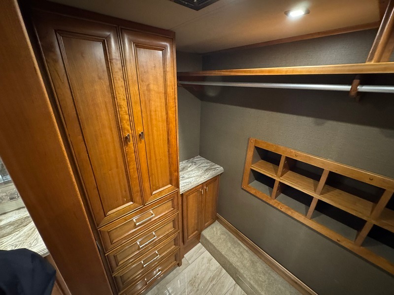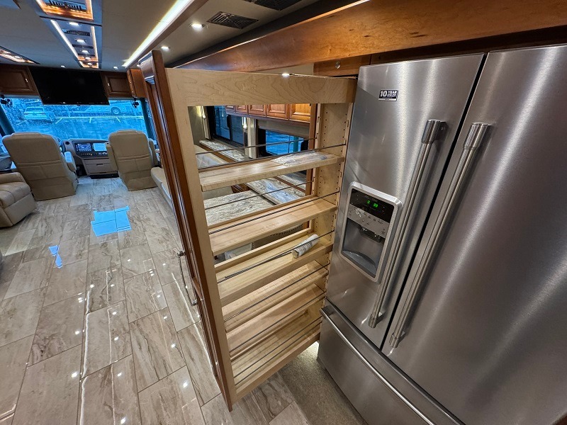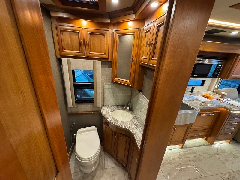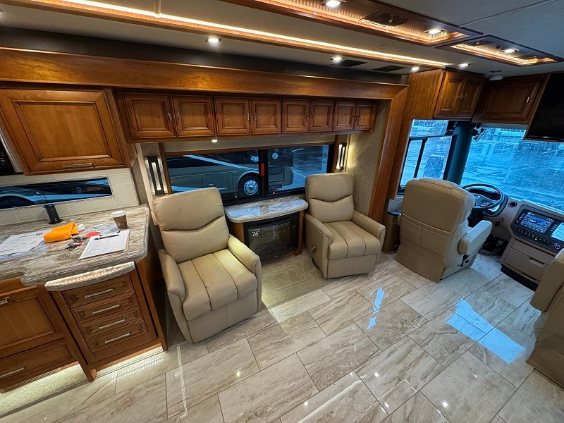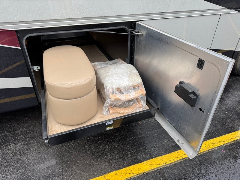 The Allegro Bus class A diesel motorhome allows you to enjoy luxury at any given campground, RV spot, or on the open road. From the low maintenance of the porcelain tile floors offering durability and elegance to the raised panel hardwood cabinet doors, the coaches provide beauty everywhere you look. The surround sound speakers, the central vacuum cleaner, and the full size pantry provide entertainment, quick clean up, and more space for non-perishables. A few key exterior features include ground effects lighting, dual pane tinted windows, a keyless entry door system for easy entrance, plus chrome heated power mirrors with remote adjustments and so much more!