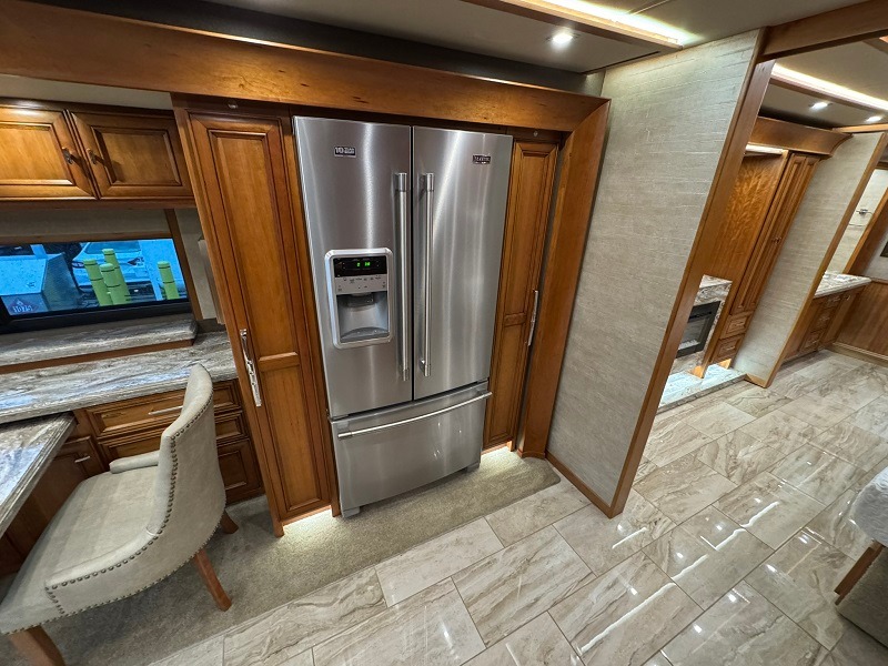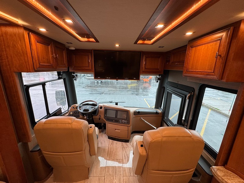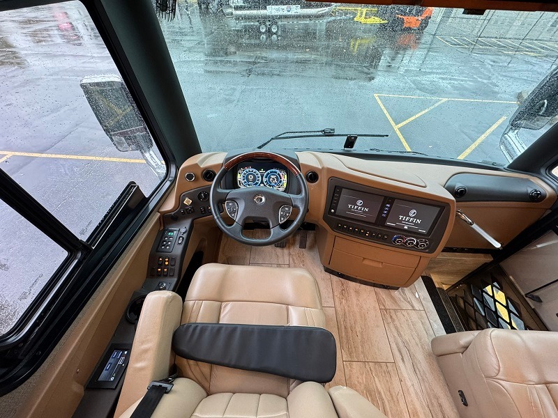 With this Tiffin Motorhomes Allegro Bus class A diesel coach model 45 OPP you will enjoy your best camping trip! Starting with the 4 TVs, the Ultra Leather air coil sofa, and the Ultra Leather DE Sofa with TV cabinet, you can relax, watch the big game, or visit with family and friends just like at home. However, if you need to get some work done the dinette is also a work station with two chairs. The stainless steel residential refrigerator and two pantries give you plenty of space to take the food items you need to prepare and serve your favorite meals on the polished solid surface countertops. You also have a large full bath with dual sinks including a closet for your wardrobe needs, and a half bath. This model is also available with a Freightliner chassis.