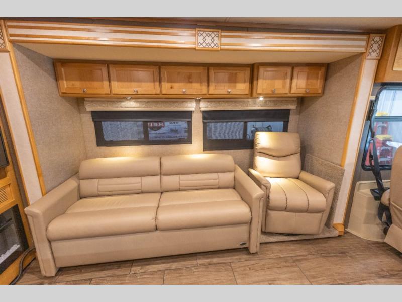 With any Allegro RED Class A diesel motorhome from Tiffin Motorhomes, you will enjoy luxurious details all throughout. You will find that the Ultra Leather furniture offers contemporary finishes and comfort, and the ceramic tile flooring will deliver an elegant base to this fabulous coach. You will enjoy having an 8.0 kw Onan generator to provide a back-up plan whenever needed, and the Extraordinaire AC System that is exclusive to Tiffin delivers quiet climate control technology.