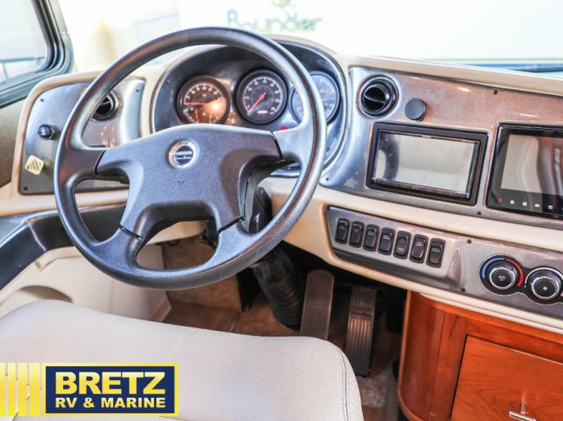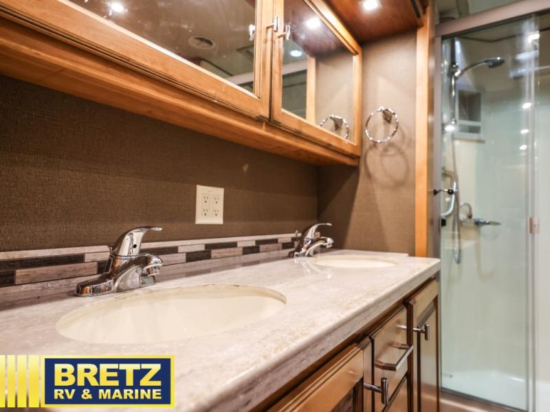Envision driving down the interstate in this Allegro RED Class A diesel motorhome while your spouse relaxes on the passenger seat with footrests. As you both decide where to stay the night, you can stop to see the views, use the full bathroom with "his and her" sinks, and grab a sandwich from the residential refrigerator. Once at your destination, the four slide outs will provide lots of room to move about from one end to the other. In the morning, be sure to relax on the Ultra Leather recliner, and you will find 12V and USB dash receptacles, two TVs in the main living area, plenty of storage throughout, and much more to enjoy!