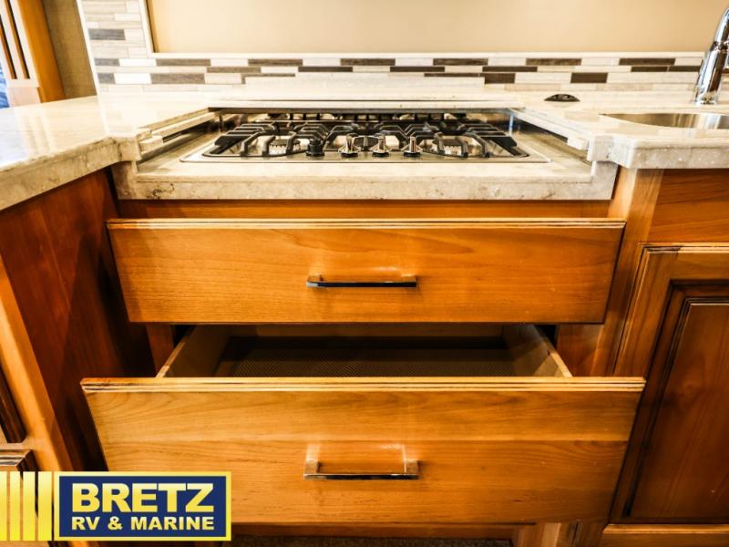 With any Allegro RED Class A diesel motorhome from Tiffin Motorhomes, you will enjoy luxurious details all throughout. You will find that the Ultra Leather furniture offers contemporary finishes and comfort, and the ceramic tile flooring will deliver an elegant base to this fabulous coach. You will enjoy having an 8.0 kw Onan generator to provide a back-up plan whenever needed, and the Extraordinaire AC System that is exclusive to Tiffin delivers quiet climate control technology.