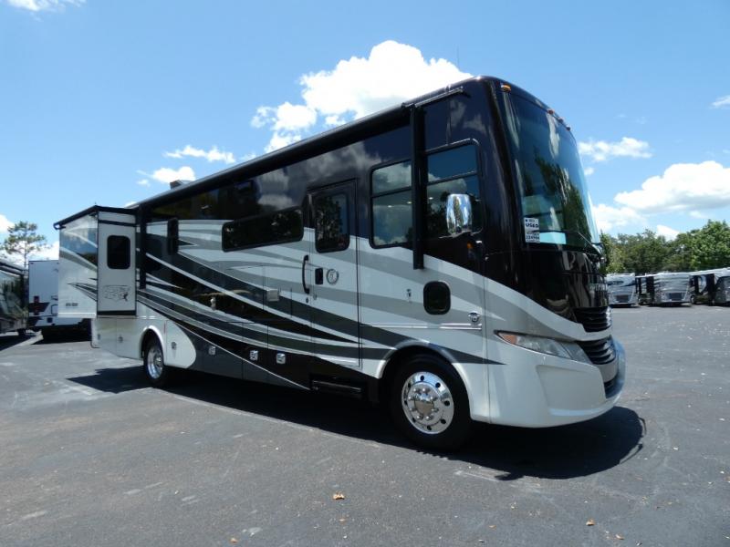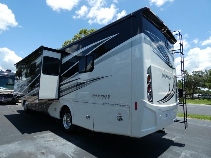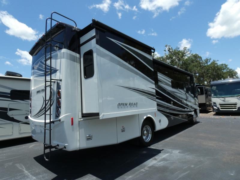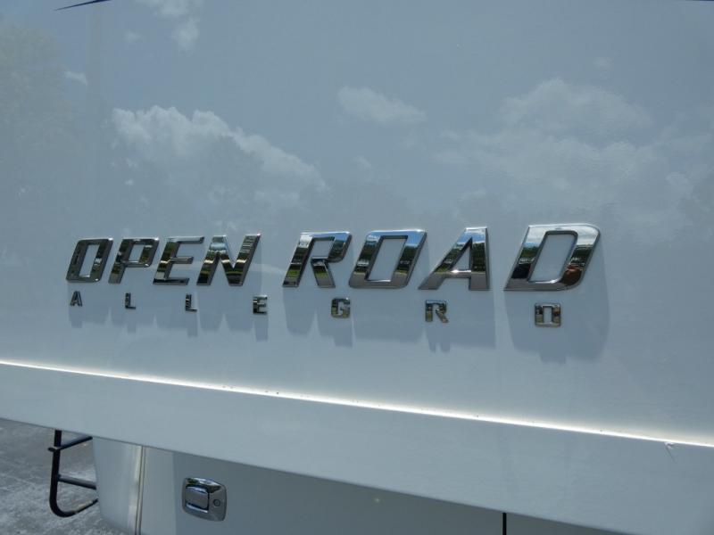 This Open Road Allegro Class A gas motorhome is a legendary RV built for the ages. From its spacious living area made possible by two slides, to its fully loaded master bedroom with a bed slide, a flat panel TV, and two full walls of storage compartments, you won't be able to ignore the quality that has been built into this motorhome. Even the cab area is decked out with ultraleather power seating, an overhead flat panel TV, and a back-up camera with a color monitor.