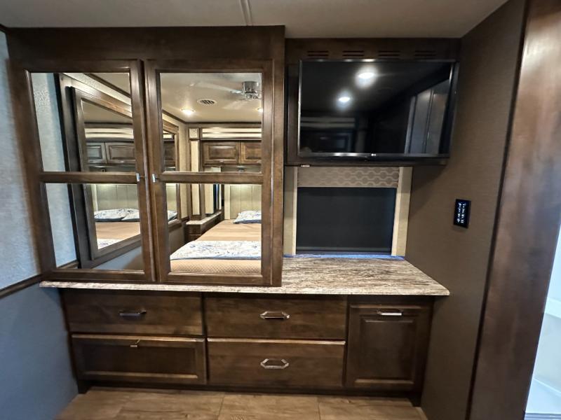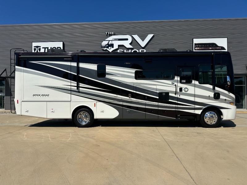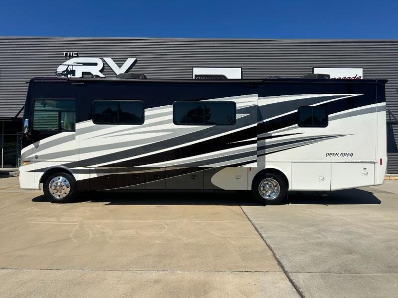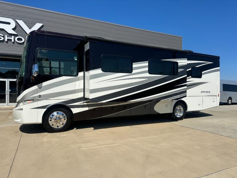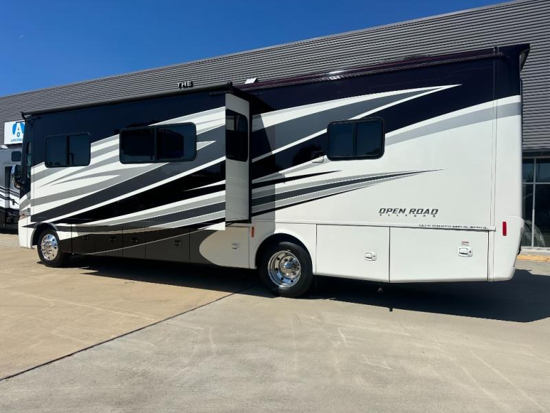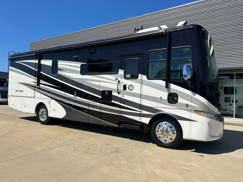 This Open Road Allegro Class A gas motorhome is a legendary RV built for the ages. From its spacious living area made possible by two slides, to its fully loaded master bedroom with a king bed slide, a flat panel TV, and two full walls of storage compartments, you won't be able to ignore the quality that has been built into this motorhome. Even the cab area is decked out with ultraleather power seating, an overhead flat panel TV, and a back-up camera with a color monitor.