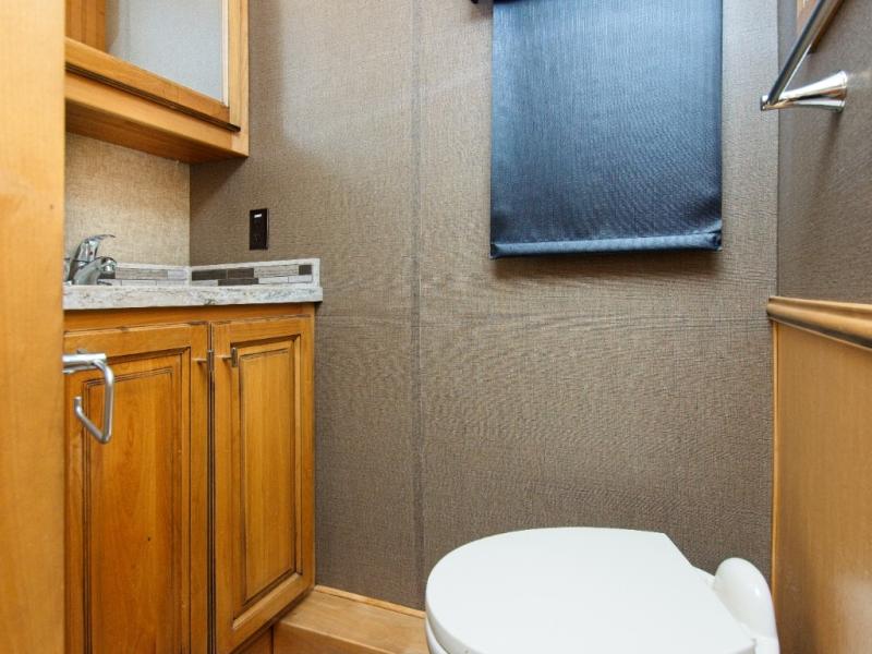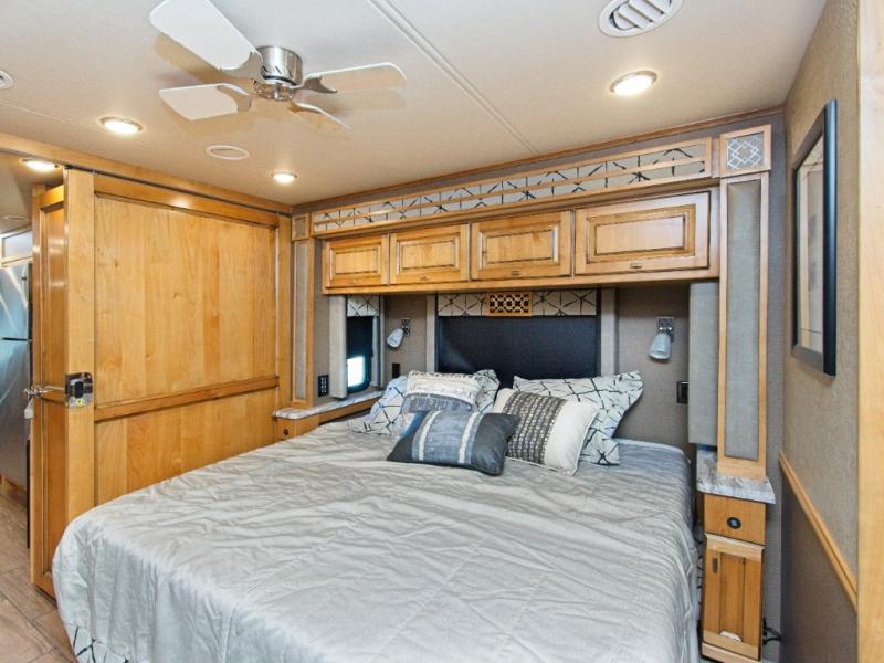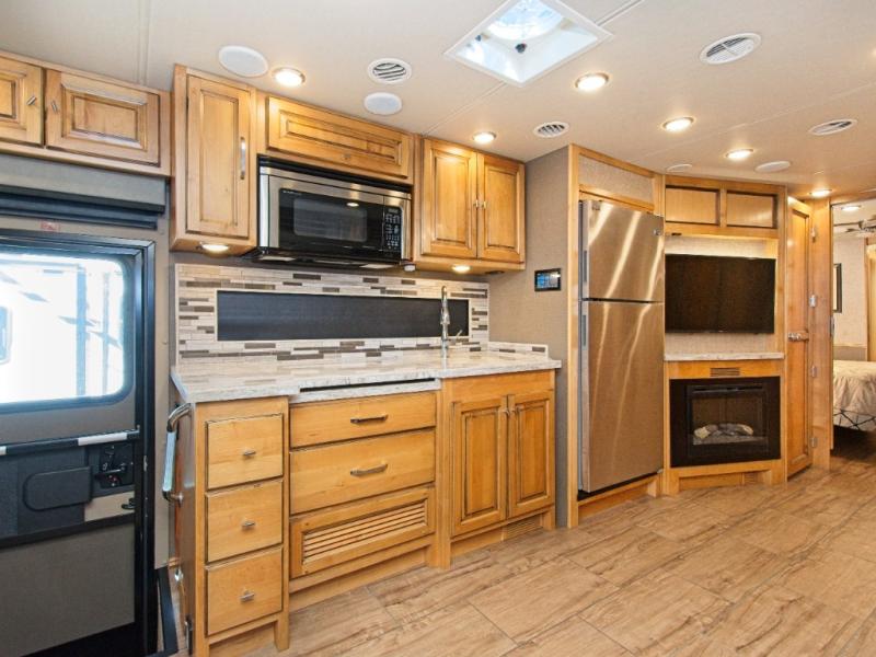 If cooking is part of your travel lifestyle, you’ll love the fully equipped kitchen. Enjoy meal prep with a panoramic galley window, double-door refrigerator, convection microwave, and three-burner range top—everything you need to cook like home, no matter where you park.