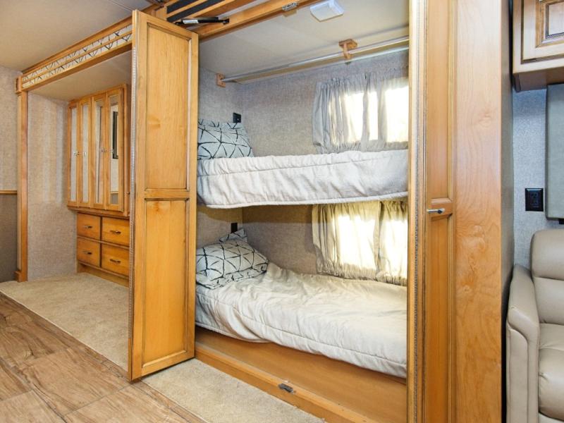 Travel in comfort and style with the Tiffin Open Road Allegro 36 UA, featuring a spacious full-wall slide for room to relax and bunk beds that make it perfect for family adventures.