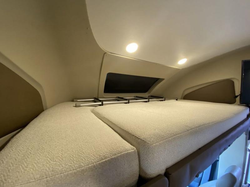 This Wayfarer 24 TW class C diesel motorhome provides access to the shower separately from the private toilet and vanity with sink which is quite convenient when you are in a hurry to head into town. The dual opposing twin beds convert to a king size bed if you need more sleeping space on any given night. The loft bed over the cab and sofa sleeper provide additional sleeping space for your kids or overnight guests. You will find four seatbelts, a spice rack and designer faucet in the kitchen, plus many more features. The 14' Carefree awning will provide an outdoor living space everyone can appreciate!