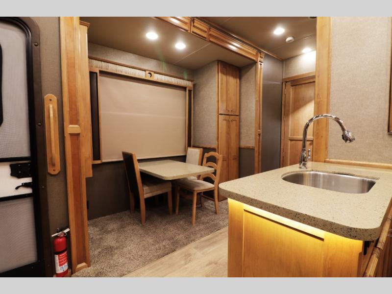 This fifth wheel boasts a high-end lifestyle without the new-unit price tag, offering generous space with six slide-outs that expand living areas dramatically. With sleeping capacity for up to 6, it’s ideal for couples who want extra room, families with kids, or travelers who host guests on the road.