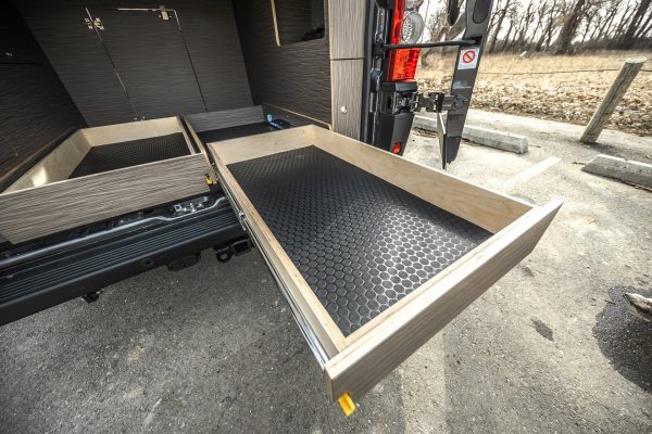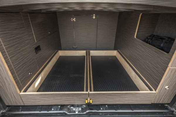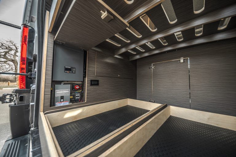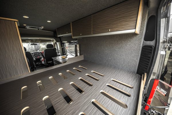 This build takes many of the best features of larger van builds, and repackages it to fit neatly and efficiently into a regular body van. This build offers a large amount of garage storage space bundled together with a fully stocked front end to create the perfect mid-range build.