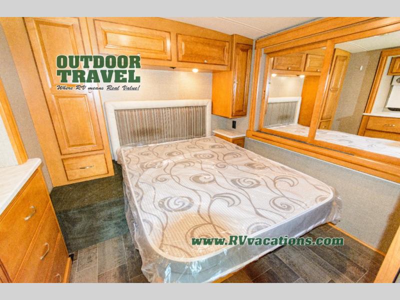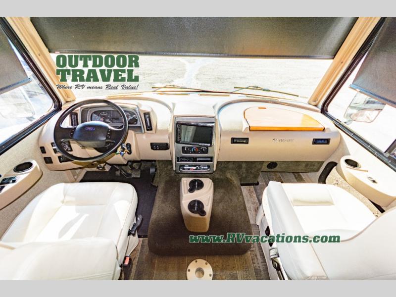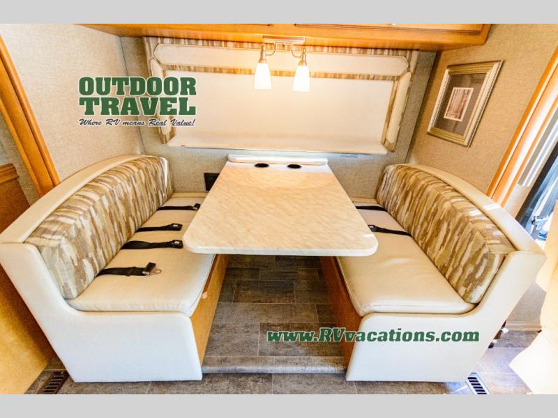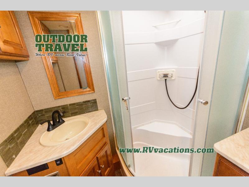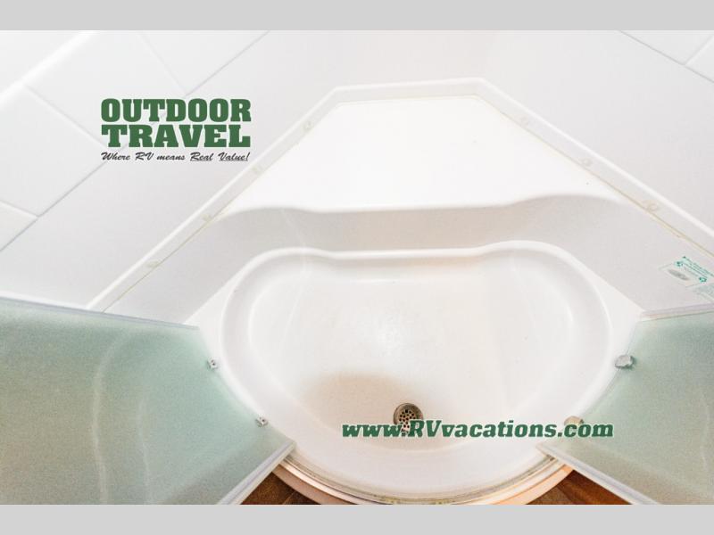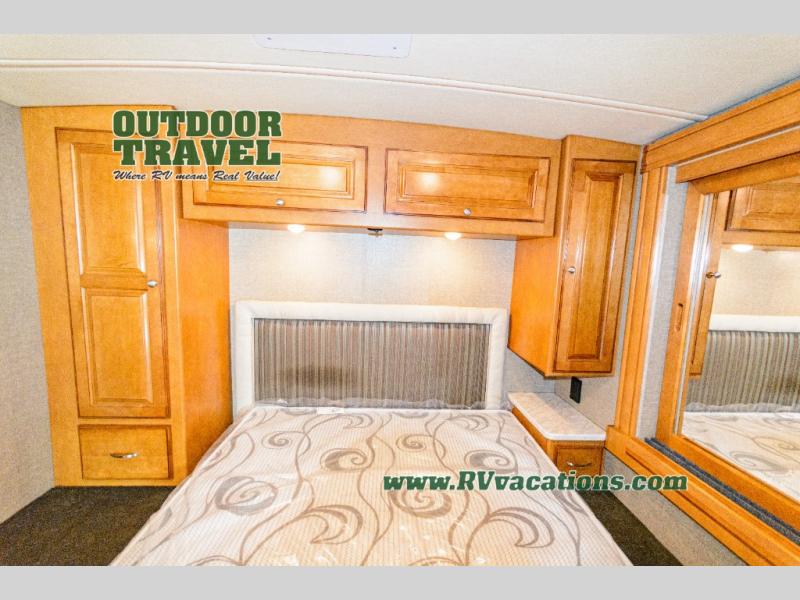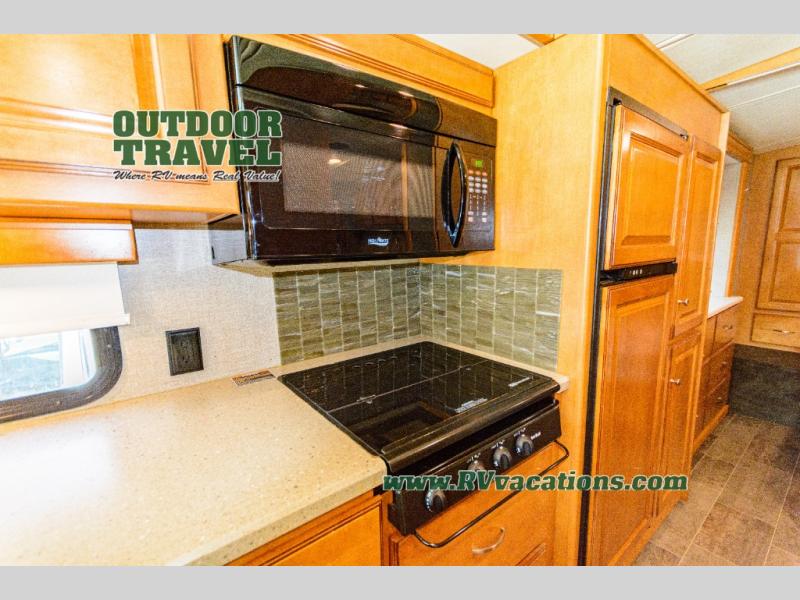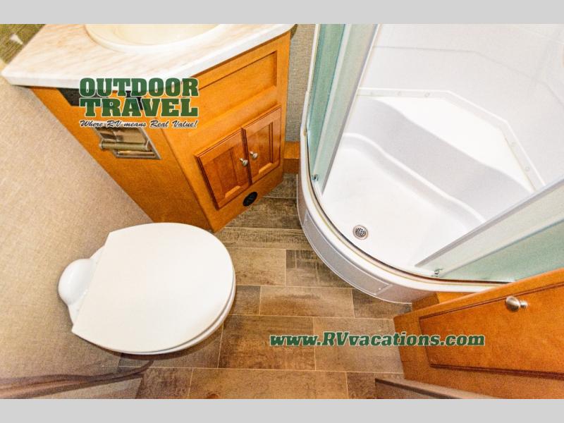 This motorhome has everything you need for your next big vacation. With room for five, you can be sure to have a great time with family and friends. This unit features a sliding door leading to the bedroom with a queen bed with an innerspring mattress and storage below, and a 24" HDTV. Bring along all your dry goods and ingredients for a home cooked meal with a pantry, and a double door refrigerator and freezer in the kitchen. This motorhome also includes three slides, giving you and your guests plenty of room as if you were home. You'll love the bathroom with decorative backsplash, a flexible showerhead, and a linen closet for all your necessities. Enjoy all the amenities this model has to offer, including, a 50" HDTV, a microwave oven, an outdoor entertainment center, plus much more! Adventure is calling your name, hurry in today!