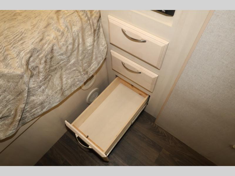 With each Minnie Drop teardrop trailer by Winnebago Industries Towables you will find modern conveniences such as a refrigerator, a two burner cooktop, USB charging ports for all your devices, and full extension ball bearing drawer guides. Each model also features an outside shower, a power awning with LED lighting, and a patio light to enjoy your evenings outdoors. Constructed with a one piece fiberglass roof, an aluminum floor structure with plywood decking, and noble classic high gloss fiberglass sidewalls, you can be sure these teardrop trailers have been made to last through years of fun. Come choose the best floorplan for your family today!