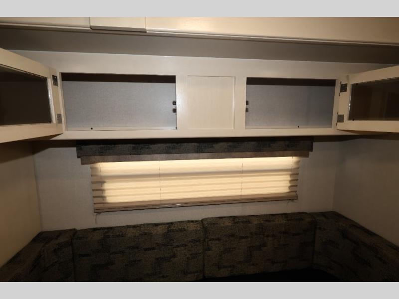 This cute teardrop trailer is perfect for the weekend getaway. Just hook it up to your SUV or minivan, and you're ready to go! Enjoy the large U-shaped dinette that is perfect for meal times or just to sit around and talk with friends. You'll love the rear kitchen in this unit with a window for a great outdoors view as you cook. This model includes a pantry for dry goods and a wardrobe to hang your clothes. Relax on the RV queen bed after a long day of exploring. Washing up is easy with a wet bath in this unit. You'll love everything about this Minnie Drop teardrop trailer!