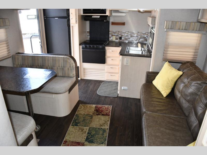 • Booth Dinette Slide – Provides a cozy dining area and easily converts into an additional sleeping space for guests