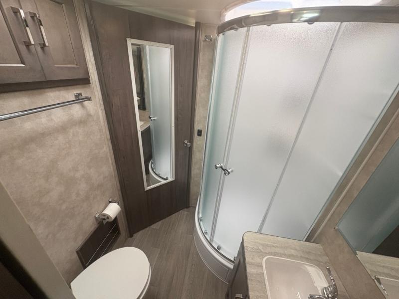 There are endless possibilities with this class C gas coach. From the spacious interior thanks to a full wall slide along the driver's side, the 28" x 73" bunks for the kiddos, the rear bedroom with a chest of drawers and a wardrobe including double sliding doors for privacy, you will find something to love around every corner! You might even like to add an optional 24" HDTV in the bedroom and in the bunk area. The bathroom has a 32" x 32" radius shower and double entry doors for another convenience. You can also choose the optional Exterior Tailgate package if you like to enjoy a little bit of game time fun outside with a TV, speakers, a wash station, a refrigerator, and more!
