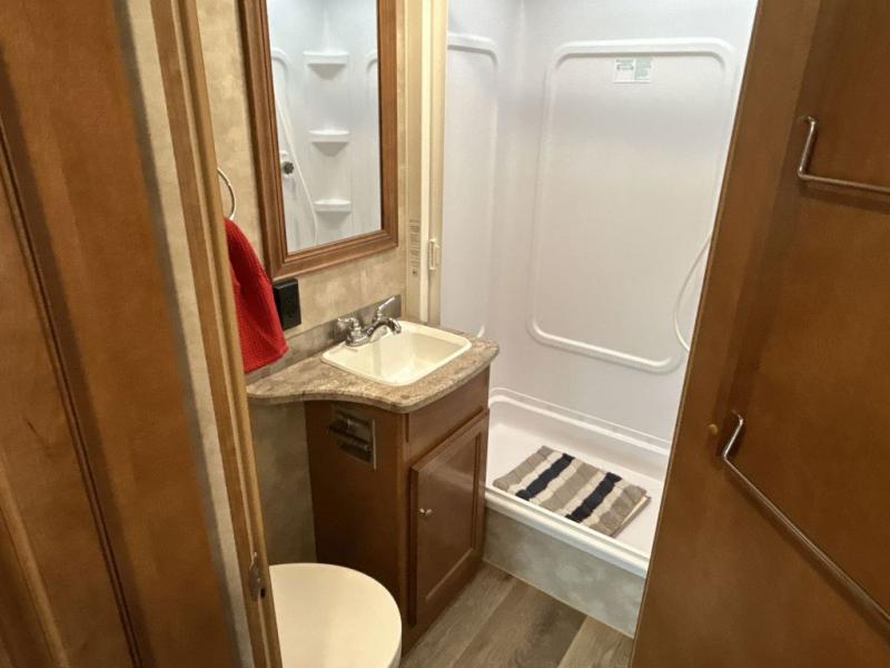 You will travel in a whole new light when you set out on your next adventure with this Sunstar 27PE Class A gas motorhome! It features a rear private bedroom with a king bed for you to enjoy a good night's rest, as well as a location for you to add the optional 32" HDTV. You will love all of the privacy given with the rear corner bathroom. The complete kitchen allows you to whip up your best meals with ease and the booth dinette is the perfect spot for you to enjoy them at, as well as transform into an extra sleeping space and has two seatbelts so you can play a card game even while you travel!