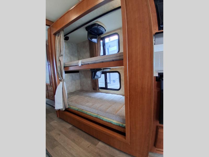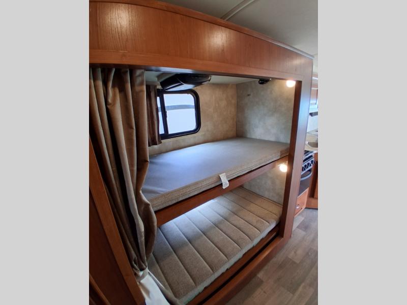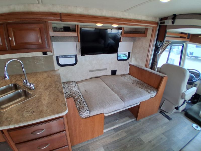 This Sunstar 31BE Class A gas motorhome is perfect for anyone who enjoys tailgating! It features an exterior tailgate package equipped with all of the essentials needed to make your best burgers and chill your favorite drinks. You can bring along the whole family with this motorhome too thanks to the bunk beds, plus you can even add the optional StudioLoft bed for even more friends to tag along. The 42" x 73" booth dinette and 40" x 66" sofa bed can also be transformed into extra sleeping spaces, as well as seating for traveling with each featuring two seatbelts too!