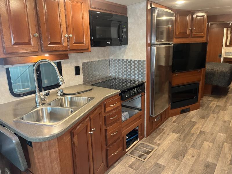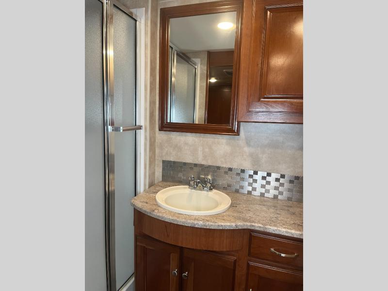 Two slide outs, plus a bath and a half are some of the highlights of this Winnebago Vista LX class A gas coach 35F. The 42" x 70" dinette plus the 48" x 77" extendable sectional sofa are ideal places to visit with your family. Across from the sofa there is a fireplace which will be nice on those chilly evenings! The half bathroom is located mid-coach and the master bathroom is in the rear. With all of the overhead cabinets, the large pantry, and the wardrobes there is plenty of storage for all of your belongings!
