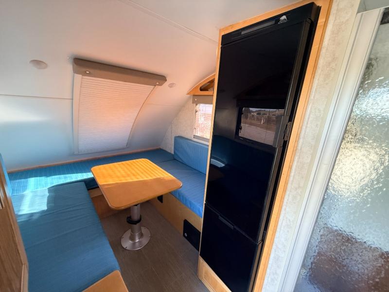For your next camping trip, you will want this Little Guy Mini MAX teardrop trailer. There is sleeping space for two in this model, and you will enjoy plenty of conveniences, such as a wet bath with a three-function sprayer and a marine-style toilet. Enjoy your meals at the U-shaped dinette that can convert into one queen-size bed or two twin-size beds. Your perishables will stay cool in the 5 cu. ft. 3-way Norcold refrigerator which has a double doors and a tall profile, plus it is astonishingly large for this class of RV. The five insulated dual pane windows have a darker tint for privacy and temperature control, and when you are laying in bed at night, you can enjoy a view of the stars from the vertical stargazer window which opens nearly 90 degrees and offers plenty of natural light during the day.