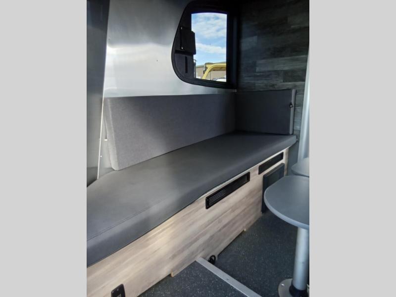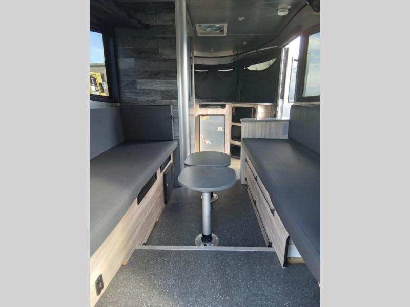 Thrill seekers wanting to venture off the beaten path will find more rugged features with the X-package. From the Goodyear Wrangler tires and solar front window protection to the 3" lift kit so you can have more road clearance for those rough trails. Yet you will not have to totally rough it with a front kitchen to store perishables and a two-burner cooktop to make a warm meal. Just imagine relaxing on the bench seats with two pedestal tables in between while your storage is under your seat. You can configure the sleeping arrangements into one 76" x 76" complete bed or two smaller half beds whichever you prefer. The on-board wet bath comes in handy during the nighttime and daytime, and the retractable clothesline allows you to hang a wet towel or two.