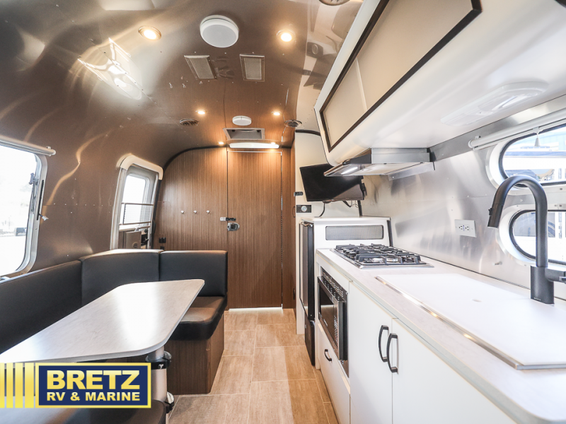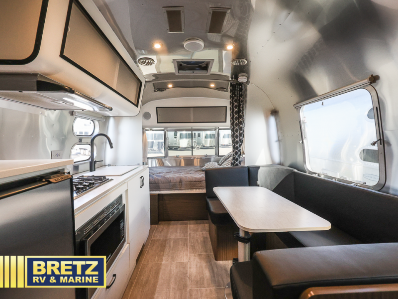 The Airstream Caravel travel trailer help you to create the perfect balance between the spontaneity of an adventure and the comfort of knowing you have a stylish place to stay warm and is full of features to make your trip unforgettable. Inside each of these travel trailers you will enjoy LED lighting with a dimmer, overhead storage with sliding doors, and a Blu-Ray DVD player all for your convenience. You won't need to eat out either with all of the amenities the kitchen provides like the three burner or two burner gas cooktop, depending on which model you choose, the stainless steel sink, and the JL stereo with Bluetooth for you to jam out while you cook. Plus, along the outside there is an exterior shower with hot and cold water to prevent tracking any mud inside the trailer. From solo trippers to families, these Airstream Caravel travel trailers have everything you will need to make the most of your trip!