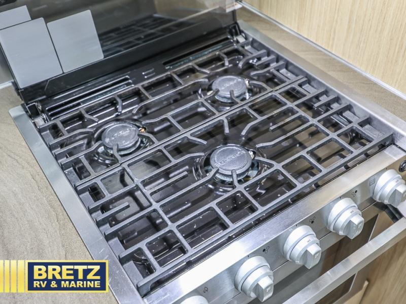 Imagine having a bedroom with a pillow top memory foam mattress that you can walk around to easily get to the closets to pick out your clothes for the day. You will also have the ability to enjoy lots of natural light when the curtains are not covering the panoramic windows. You might like to make breakfast with full amenities, plus you have the choice of dining inside at the U-shaped dinette or outside under the awning. You can then take a shower while someone else is brushing their teeth in the full bathroom with a large vanity and storage, plus there is an exterior shower when you don't want to track dirt indoors.
