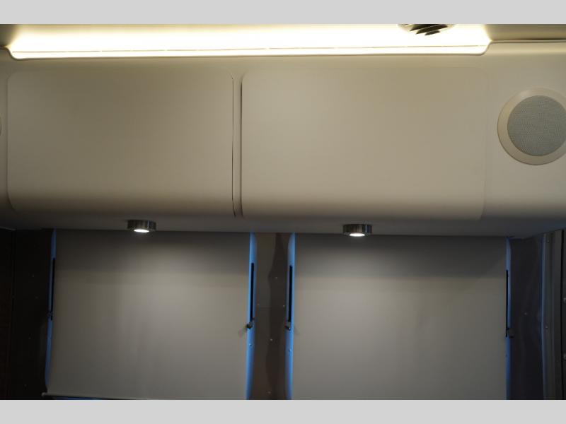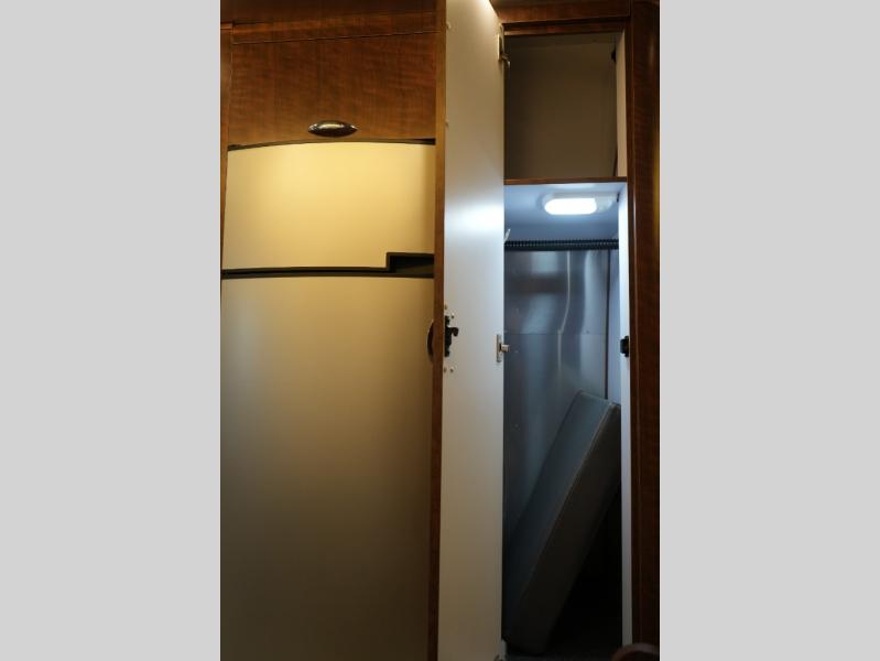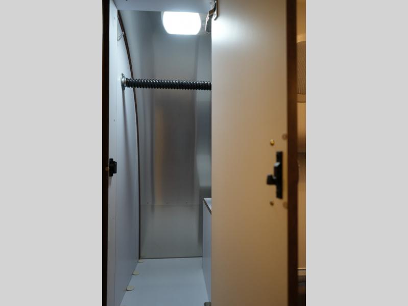 At the front, you’ll find twin-size beds with plush mattresses and an overhead locker system, giving you a restful night's sleep and clever storage. A wardrobe at the foot of the beds keeps your clothes neatly organized, so you're always ready for the day’s next adventure.