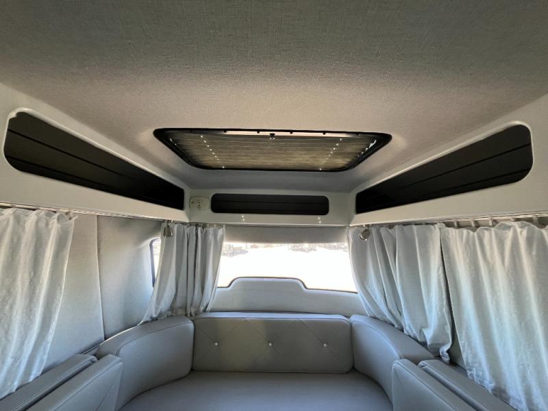 Panoramic Windows • Galley Kitchen • Convertible Sleeping Area • Full Bathroom • Efficient Storage • Cozy Lounge Seating