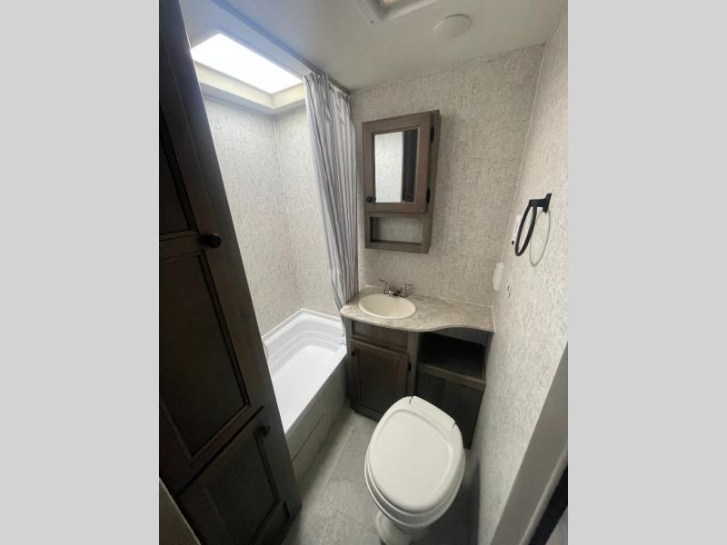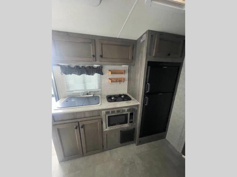 Each Coachmen Apex Nano travel trailer is super light in weight and features vacuum bonded Azdel fiberglass sidewalls and an Aluma-cage construction with a welded aluminum framed floor. Each travel trailer contains well built Pewter Maple cabinetry with hardwood mortise and tenon cabinet door frames, as well as Congoleum designer flooring throughout. You will also enjoy the high efficiency LED interior lighting, the AM/FM stereo with Bluetooth, the Evergreen sleep mattress, and the stainless steel microwave for you to warm up a quick snack. The skylight in each bath brings in more natural lighting and the outdoor shower helps eliminate any mud tracked through the trailer!