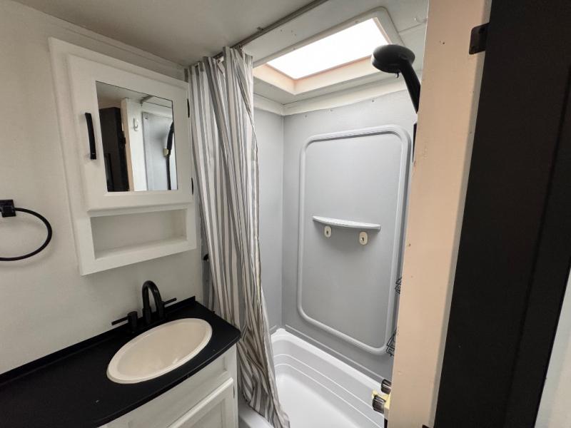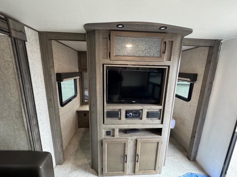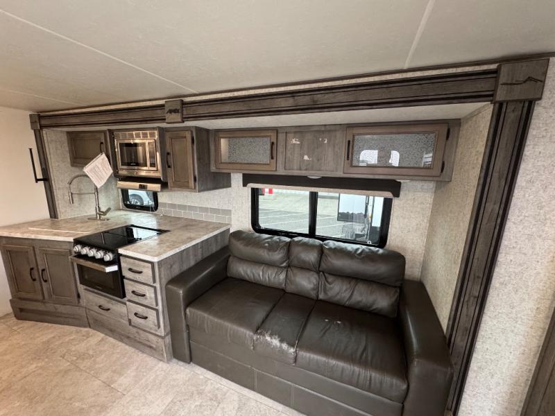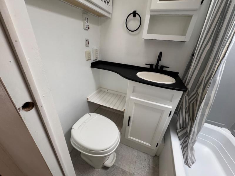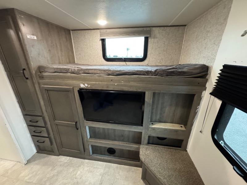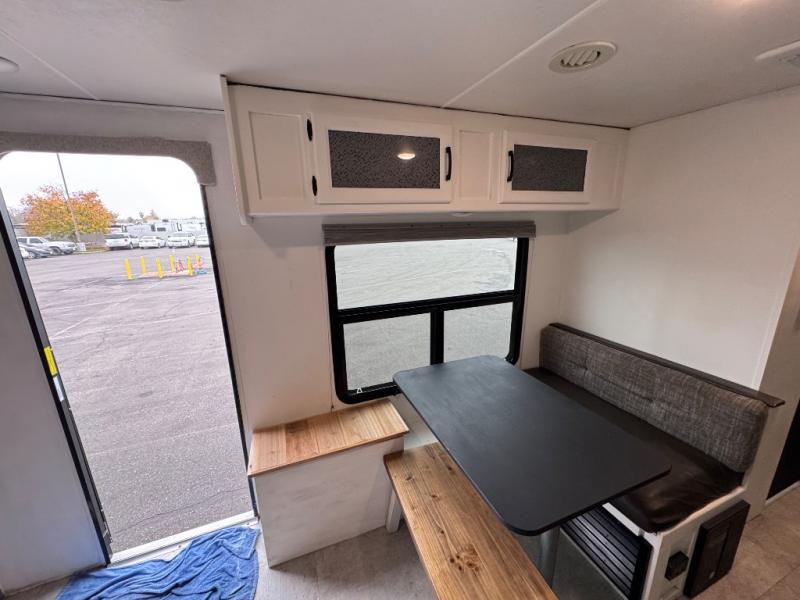 What I liked most: Kitchen counter has a large amount of space. Entertainment Center has lots of storage. Dining booth has one storage cabinet. Kitchen area has plenty of storage. Bunkhouse has plenty of storage with 2 large cabinets, 1 small cabinet and 3 drawers.