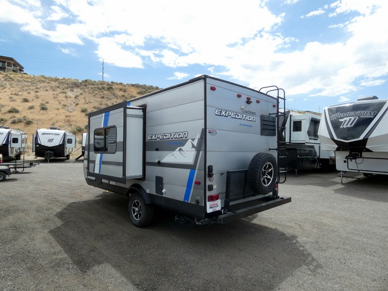With any Catalina Expedition travel trailer by Coachmen RV you will be able to find adventure with the the 3" lift kit, the off-grid solar prep system which includes universal solar junction boxes, a 40A/480W solar store controller, a battery monitor with Bluetooth and Renogy App, and a 1,00 watt inverter, plus the all-terrain tires. The 200 lb. flip down cargo carrying rack allows you to bring along the fun gear, and the Leash Link gives you a quick hookup D-ring for your family pet. The interior offers comforts and convenience such as a high rise bullet style kitchen faucet, an under mounted kitchen sink, a Slim Line Furrion range hood, a silverware kitchen drawer, Salvage Light Oak cabinets, underbed storage, and more! Choose the Expedition that will provide no limits to adventure!