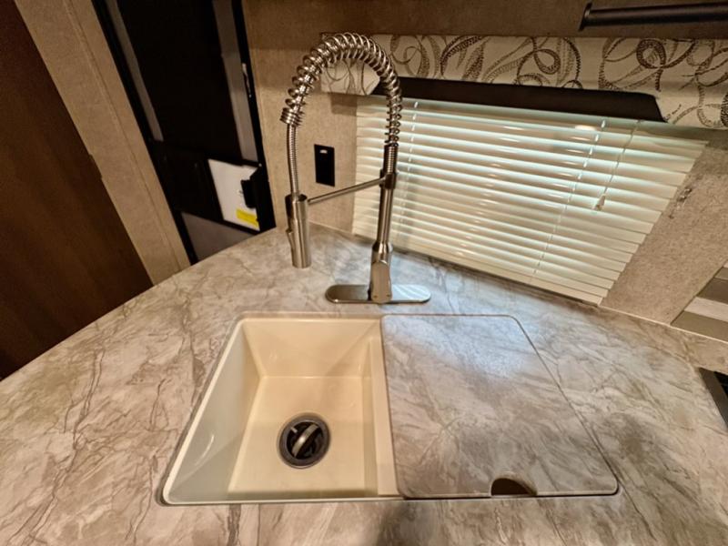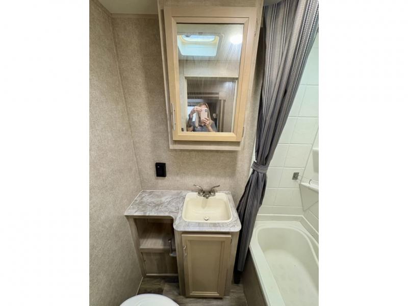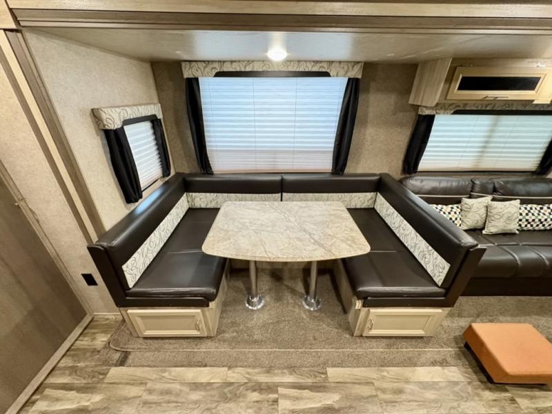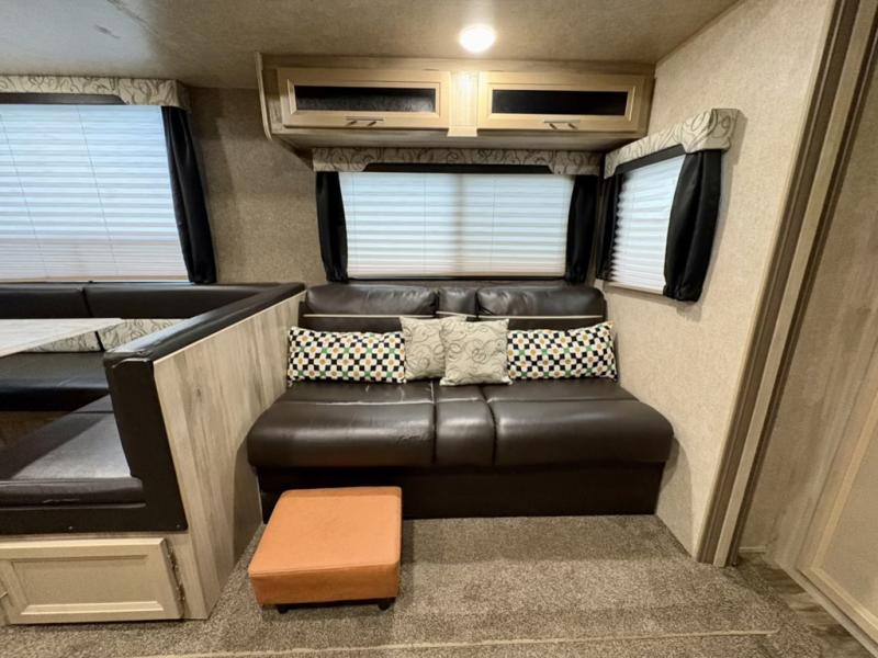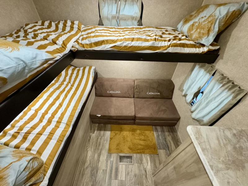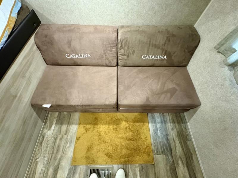 You'll see beauty all around you when you take this Catalina Legacy Edition travel trailer out to the campsite! With a rear private bunkhouse, your kids or overnight guests will be happy to have their own space, and you will sleep comfortably in your own private bedroom up front. The U-shaped dinette is a great spot to sit down for breakfast in the morning or a card game at night, and the theater sofa can adjust into multiple positions to provide what you need.