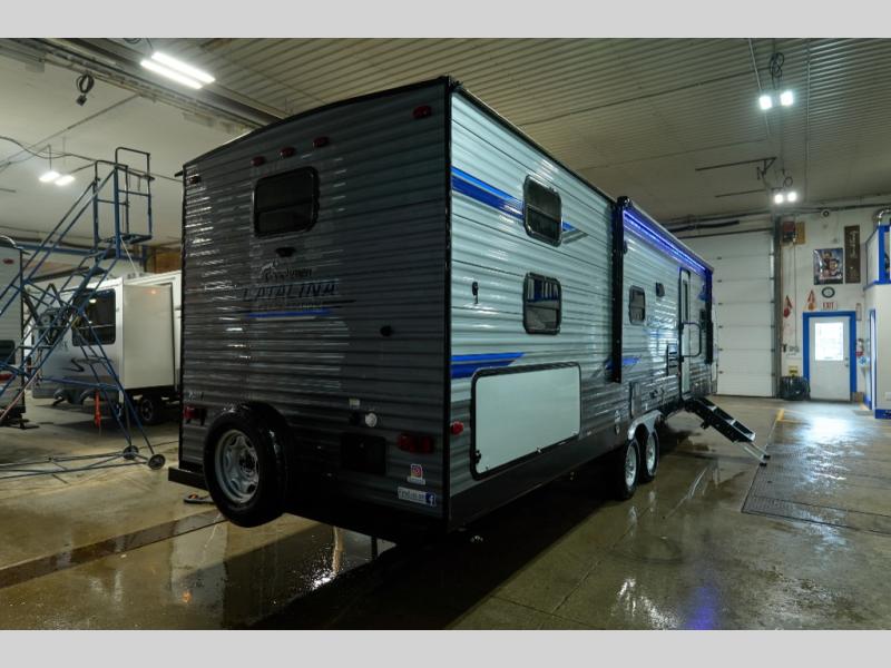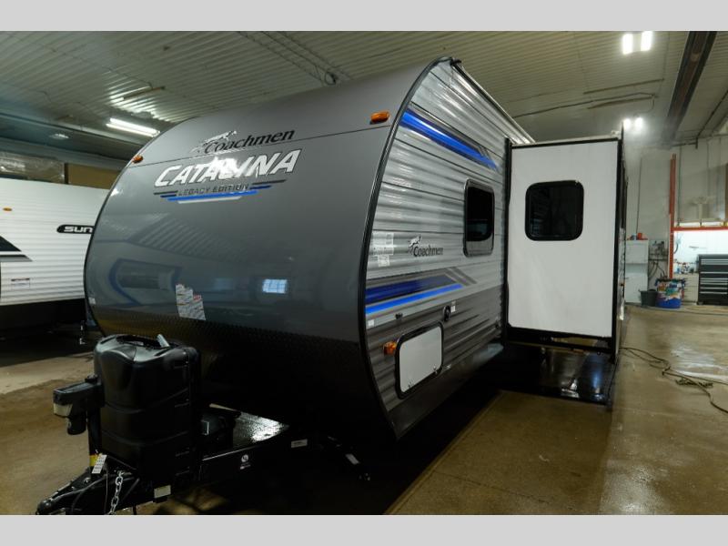 Appealing to a wide range of interests and lifestyles, the Coachmen Catalina Legacy Edition travel trailer allows you to tackle the weekend or extend your stay with an abundance of helpful features that will make it easy to have fun! Packed with the quality, value, style, and comfort that you would expect from Coachmen, these Catalina Legacy Edition trailers feature a power awning with LED lighting to enhance every late-night gathering around the campfire. The blue LED under-body lighting also adds to the nighttime ambiance, and the enclosed, fully sealed underbelly protects your unit from extreme temperatures. Plus, it will also be a great benefit to have a 35,000 BTU furnace during those cooler nights.