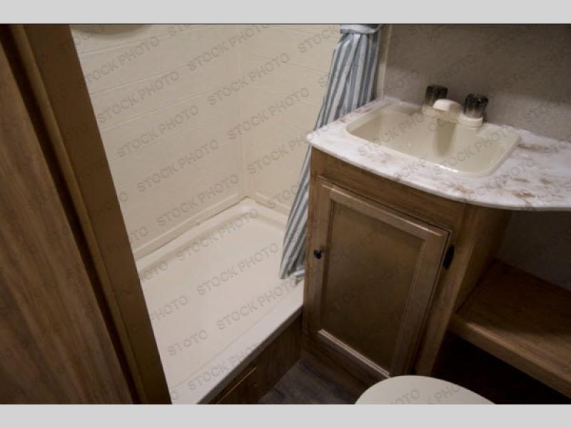 When you are ready for some relaxation with endless outdoor views, hook up this Freedom Express Pilot travel trailer to your family tow vehicle and head out to your favorite spot. This model offers plenty of conveniences and comfort for a weekend or week-long trip. The chef in the family can heat leftovers in the microwave or cook on the two-burner cooktop which includes a butcher block cover that will come in handy while you are chopping up veggies, and if you need to watch the big game, the LED TV is easily viewable from almost anywhere. Having a full bathroom allows you to camp off grid, and the skylight above the shower will brighten your spirits each morning as you get ready for the day. You will also appreciate the LED light strip in the exterior pass-through storage because it makes loading your larger camping gear during the nighttime easy.
