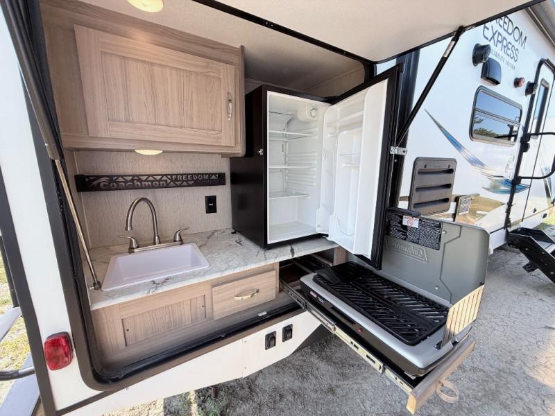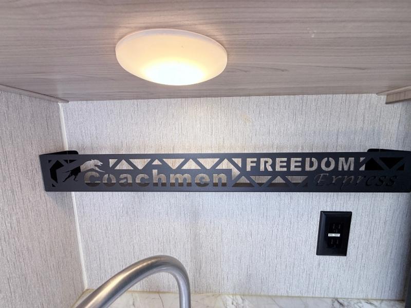 With any Freedom Express Ultra Lite travel trailer by Coachmen, you will appreciate the ease of towing behind your family vehicle. All the tanks are located under the floor to lower the center of gravity for increased storage capacity and improved handling down the road. Inside of each trailer, you'll enjoy features such as LED lighting throughout, Congoleum Designer Carefree flooring, an LED TV, plus a double-door refrigerator, just to name a few. The pass-through storage with an LED light strip allows you to easily bring along those larger camping items, plus there is an electric awning with LED lights outdoors, as well as an exterior shower station to wash off your hiking boots. Come see how you have the freedom to explore in a Freedom Express Ultra Lite travel trailer today!
