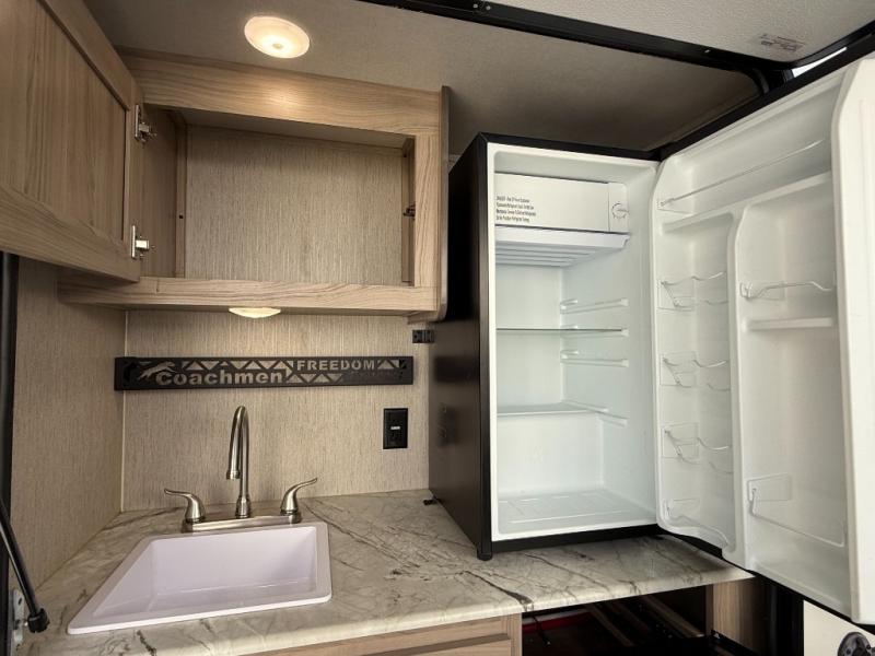 With any Freedom Express Ultra Lite travel trailer by Coachmen, you will appreciate the ease of towing behind your family vehicle. All the tanks are located under the floor to lower the center of gravity for increased storage capacity and improved handling down the road. Inside of each trailer, you'll enjoy features such as LED lighting throughout, Congoleum Designer Carefree flooring, an LED TV, plus a double-door refrigerator, just to name a few. The pass-through storage with an LED light strip allows you to easily bring along those larger camping items, plus there is an electric awning with LED lights outdoors, as well as an exterior shower station to wash off your hiking boots. Come see how you have the freedom to explore in a Freedom Express Ultra Lite travel trailer today!