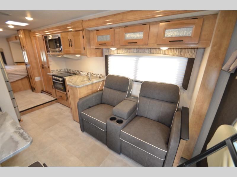 What I liked most: My wife and Imwere hesitant in DownsiIng from a 40 ‘ Class A to a 32’ Class C bit this coach made us believe we made the right de ision. The floor plan more than meets our needs with tons of storage inside. Driving the rig is so much easier. Made the change so my wife could help pitch in with the driving. As with all new coaches you are not without problems. Two windows that don’t lock and a leaking kitchen exhaust hood will require us to take it to the dealer. The quality of the workmanship can also be better, but all in all we are happy with our coach.