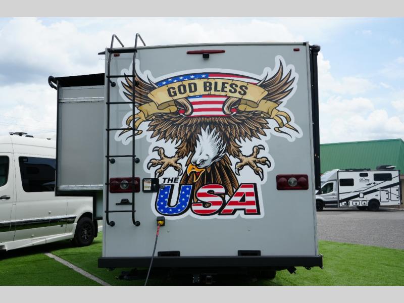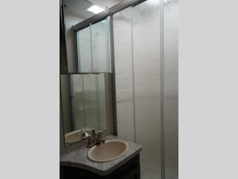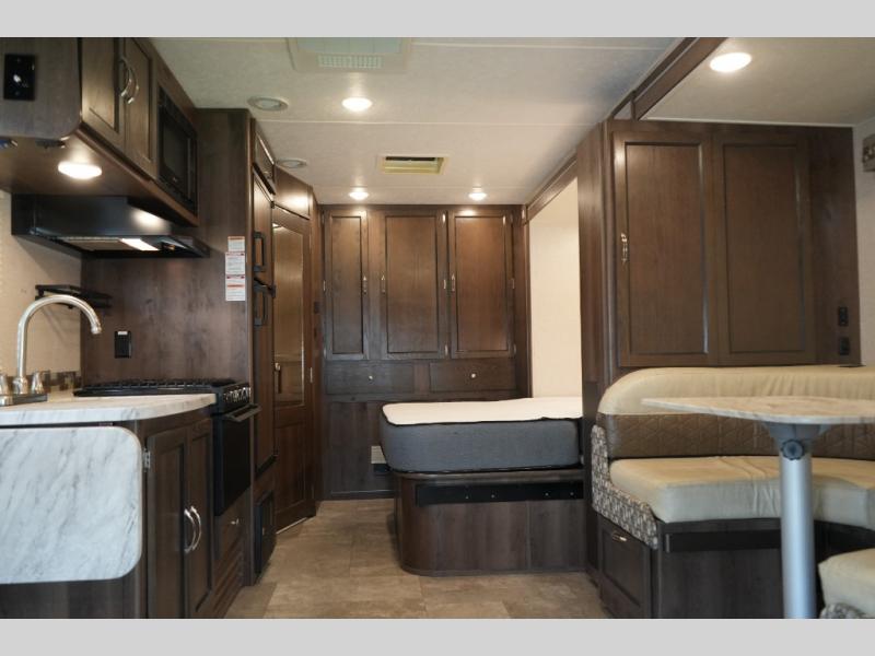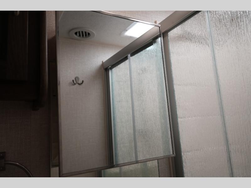 Plenty of room in this spacious motor home! Rear corner bath, residential microwave, and pantry will make you feel at home. Call Today! 352.787.7744
