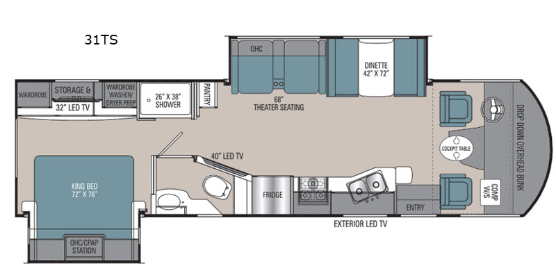 | TV Info | 40" LED Coach, 32" LED BR, Ext. LED TV |