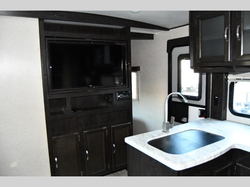 The Spirit Ultra Lite travel trailers by Coachmen allow you to camp with convenient features such as the motion activated pass through storage and fishing pole storage, the power awning, the exterior dog wash, and the bottle opener. Each model includes a wireless phone charger, lighted USB ports, plus an AM/FM/CD/DVD Bluetooth stereo to keep your tablet charged and the party going. You can easily prepare meals each day with the Furrion oven and each model features seamless thermo foil wrapped countertops with a deluxe high rise faucet for easy clean-up. You can be sure to enjoy years of use with these travel trailers since they are constructed with Azdel composite panels in place of luaun plywood, a laminated, aluminum framed floor and sidewalls, plus the heated and enclosed underbelly allows you to extend your camping season!