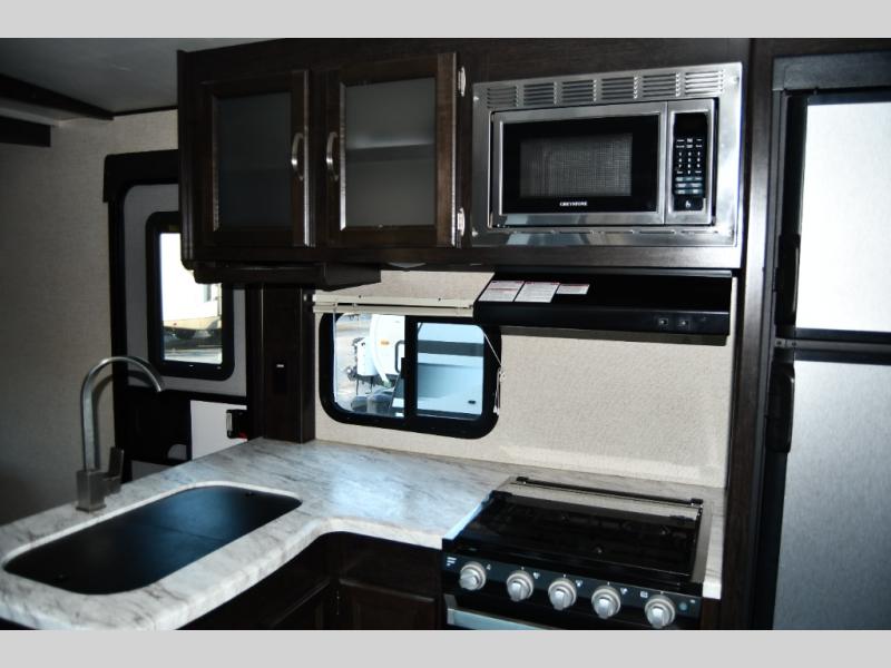 Take this Spirit Ultra Lite travel trailer with you on your next camping adventure and choose whether you want to cook inside or outside! The outdoor kitchen gives you the option to grill up some burgers and hot dogs while you watch your kids run around the campground, and the three-burner range inside lets you whip up a hearty breakfast each morning. You will love having all of the various storage compartments that have been included throughout this model, like tool center, kids' convenience center, and under-the-bunk storage. There is even Max Bed storage with four drawers, a laundry center, shoe storage, plus more!