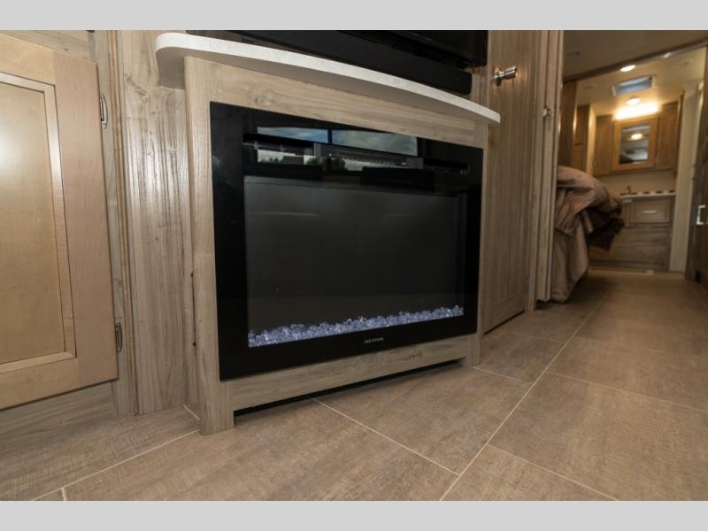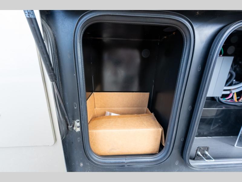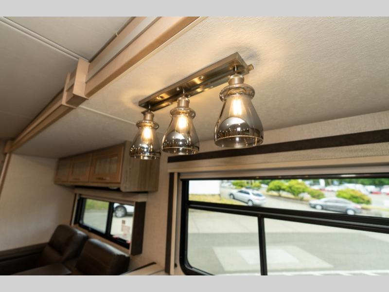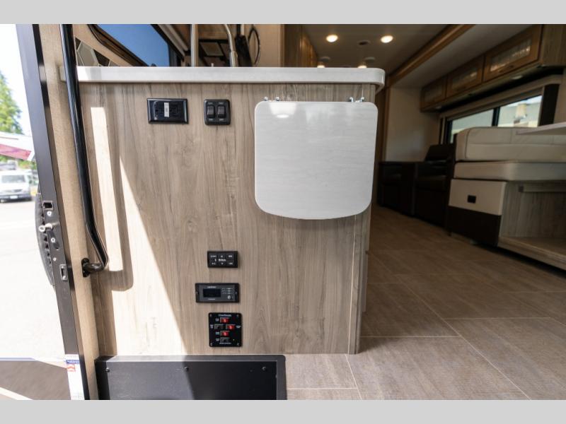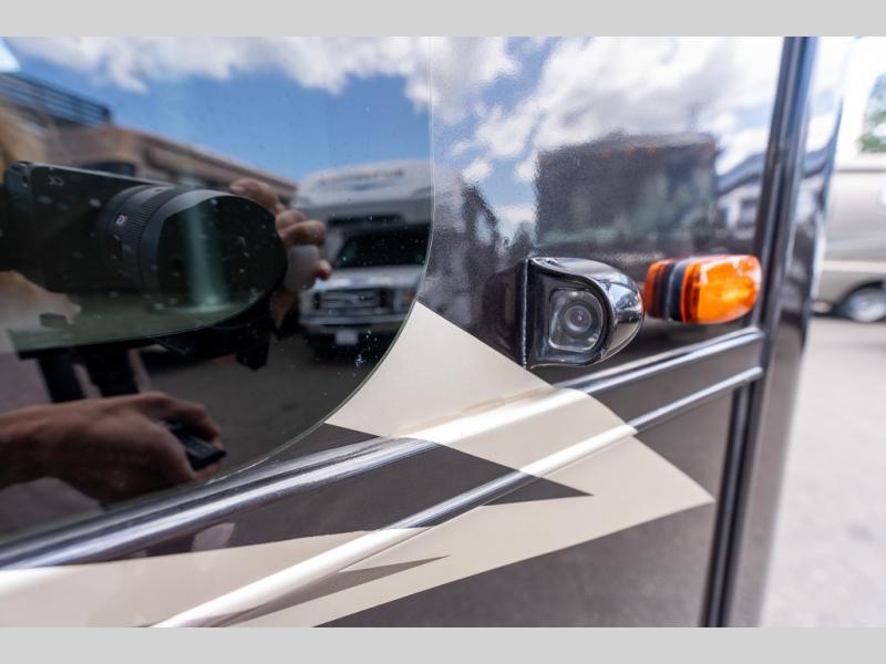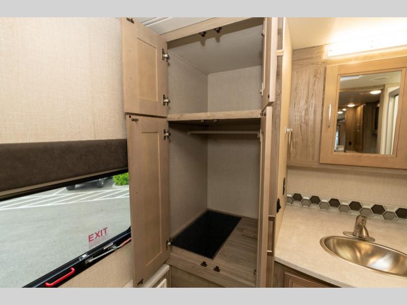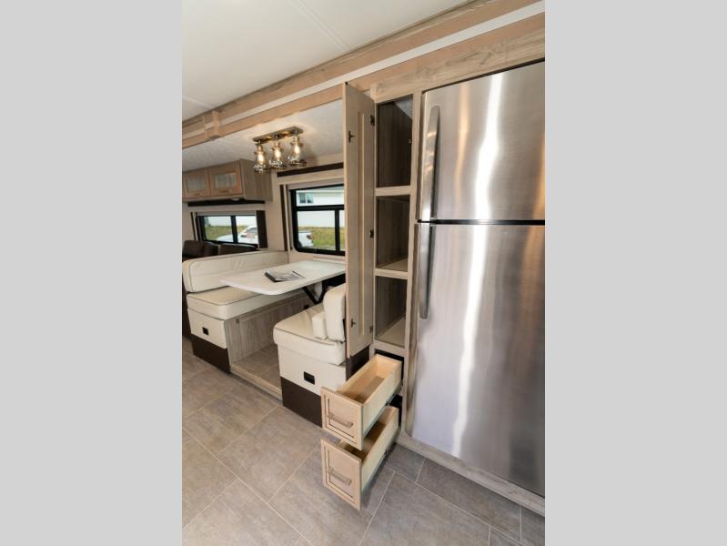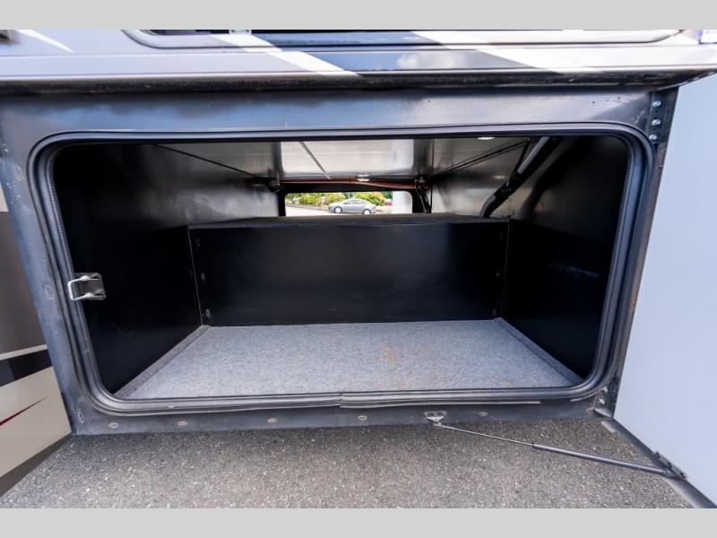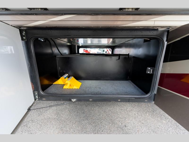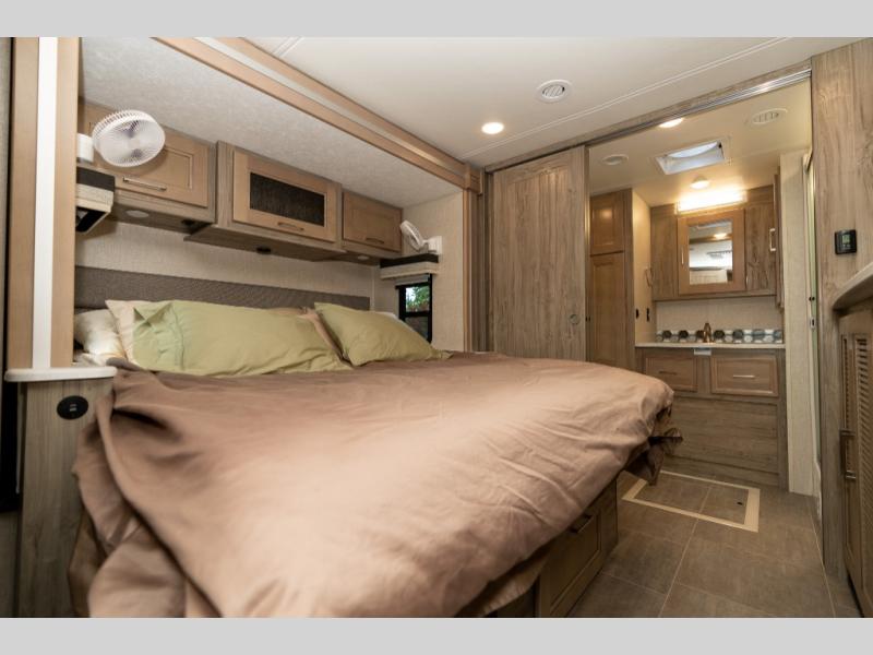 Comfortable and convenient are the adjectives you will be using when traveling in this coach. Imagine having a master suite with a king bed slid out and storage as well as a full bathroom with a closet including a hamper, linen storage, and a shower. You even have a half bath for your guests that might enjoy sleeping on the sofa bed, the dinette or the drop-down overhead bunk. You can enjoy your morning coffee at the cockpit table or the dinette, plus the power awning offers an outdoor living space. You can turn on the exterior TV if you like, or listen to sounds of nature while relaxing in your own camp chair.
