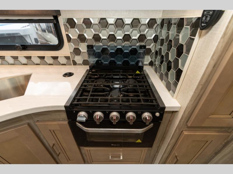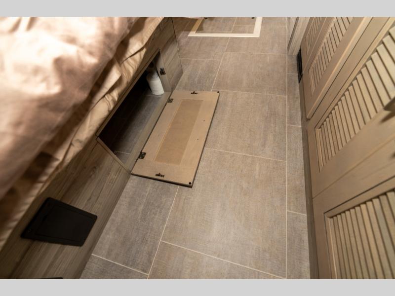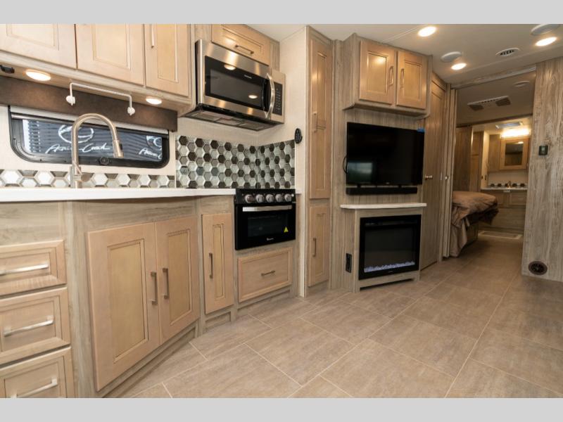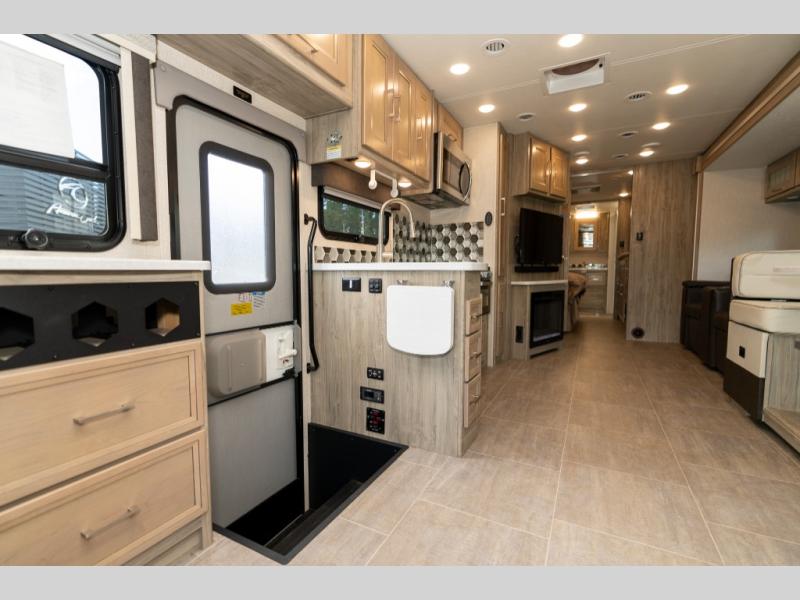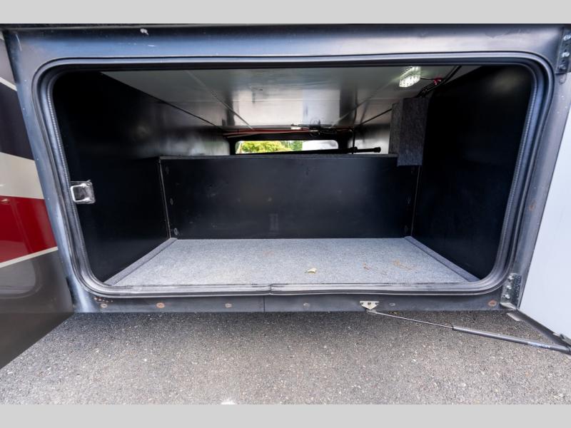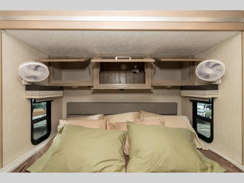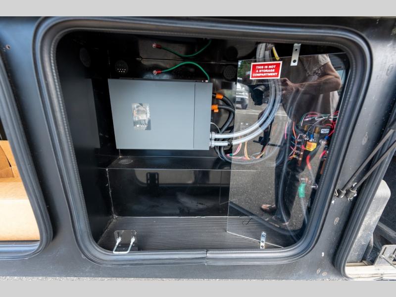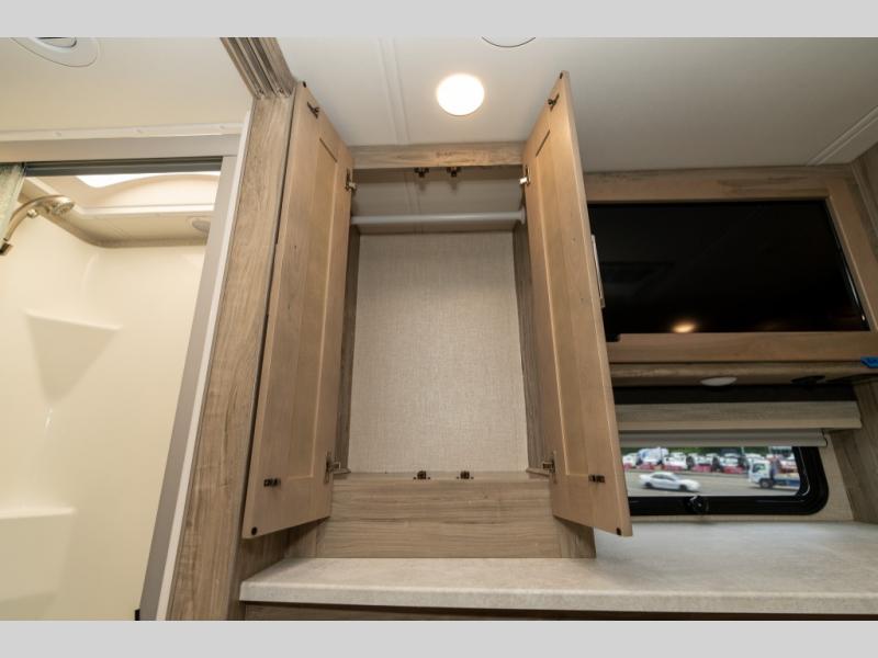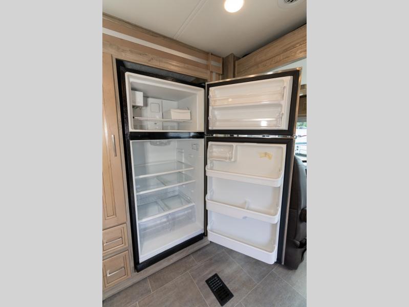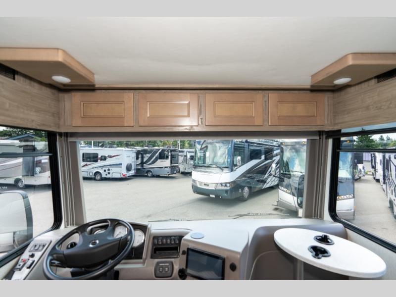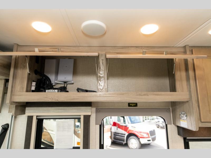 Comfortable and convenient are the adjectives you will be using when traveling in this coach. Imagine having a master suite with a king bed slid out and storage as well as a full bathroom with a closet including a hamper, linen storage, and a shower. You even have a half bath for your guests that might enjoy sleeping on the sofa bed, the dinette or the drop-down overhead bunk. You can enjoy your morning coffee at the cockpit table or the dinette, plus the power awning offers an outdoor living space. You can turn on the exterior TV if you like, or listen to sounds of nature while relaxing in your own camp chair.
