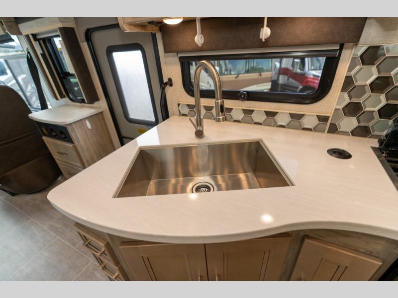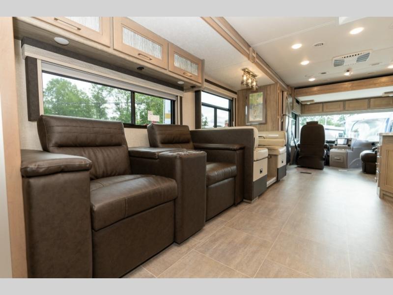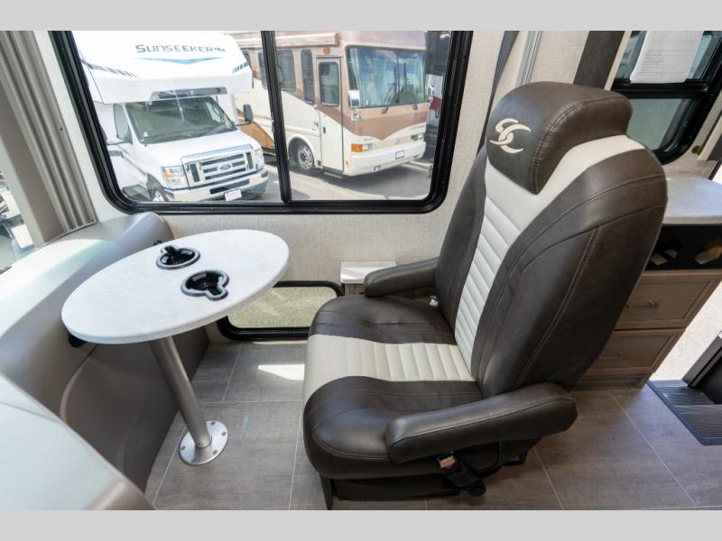 Why not enjoy the journey as much as the destination? Each Sportscoach SRS class A diesel coach gives you the Coachmen Advantage providing a smooth ride with chassis air suspension and air brakes on a straight line Freightliner chassis. The dashboard monitor with rear and side color cameras makes backing up and navigating tight spaces easy, while the fully automatic leveling jacks make setting up a breeze. You will appreciate the self-closing ball bearing drawer guides and upgraded linoleum throughout, the pop-up receptacle with USB ports in the galley to keep all the electronics ready for the next activity, and the residential-style headboard and upgraded mattress. Choose the floorplan that works for your traveling lifestyle!