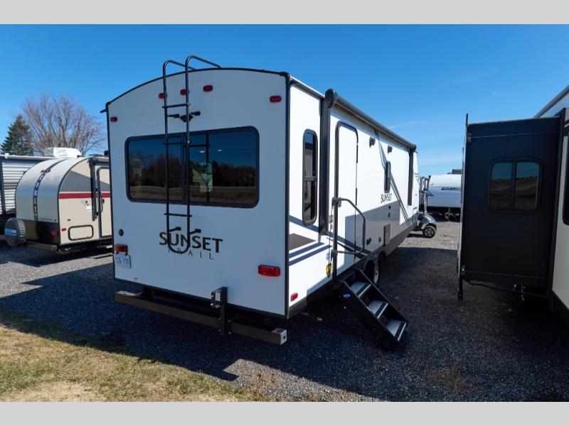 The Sunset Trail travel trailers by CrossRoads RV allow you to extend your camping season with the Extreme Weather Package that includes a reflective heat barrier, a heated and enclosed underbelly, and a 13,500 A/C. You'll enjoy many convenience features such as Keyed-A-Like locks, an HDMI Bluetooth stereo, solid doors to the bedroom, and cross ventilation slide windows that allow the fresh spring air in. These models also include Secure Stance entry steps, a ground stable structure with a 500 lb. weight rating that is adjustable and self-storing to make camping even easier, and you can choose the optional 50 AMP service over the 30 AMP standard.