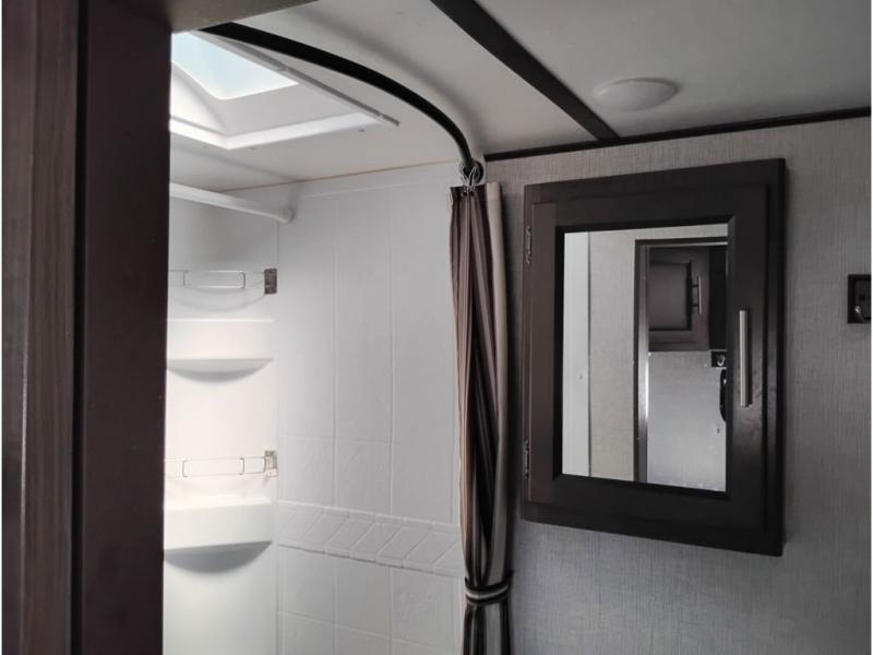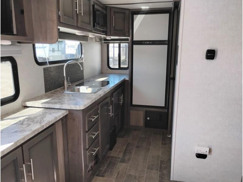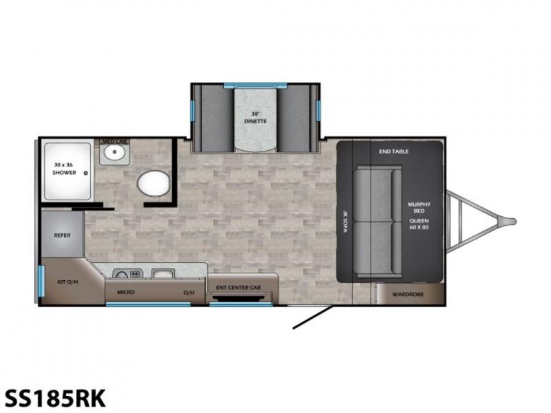 Enjoy added interior space in this travel trailer that includes a slide out and a convenient Murphy bed that can easily hide away during the day. The 38" booth dinette provides a place to play a game of cards if the weather is bad and the kids can convert this area into their bed at night. Let the chef of the family prepare breakfast on the cooktop or use the microwave oven so you can get outdoors faster to find a trail. You'll appreciate the full bath with a 30" x 36" shower to clean up after a day outside. This model also includes an power awning with LED lights and outside speakers to keep the party going.