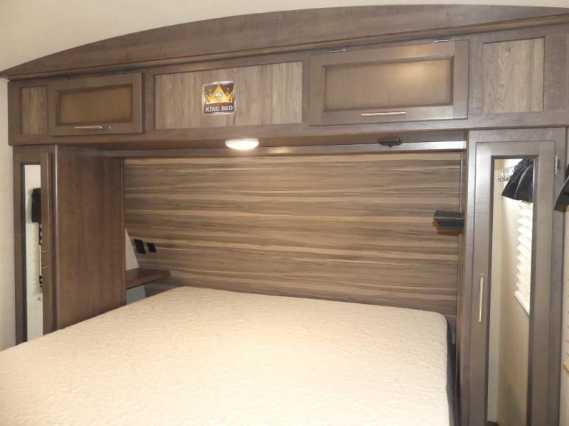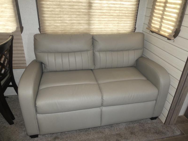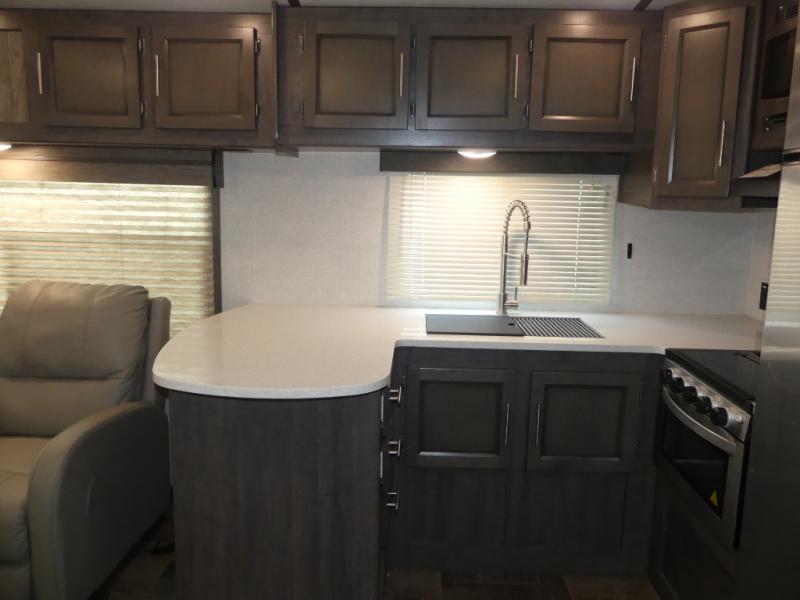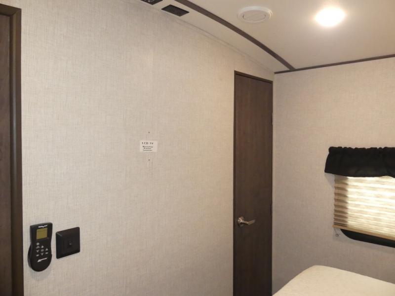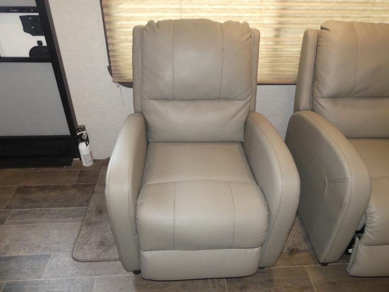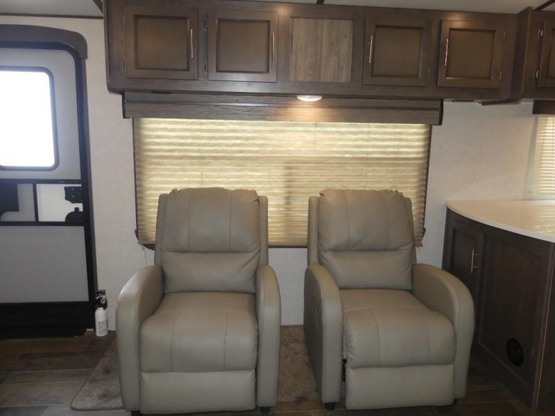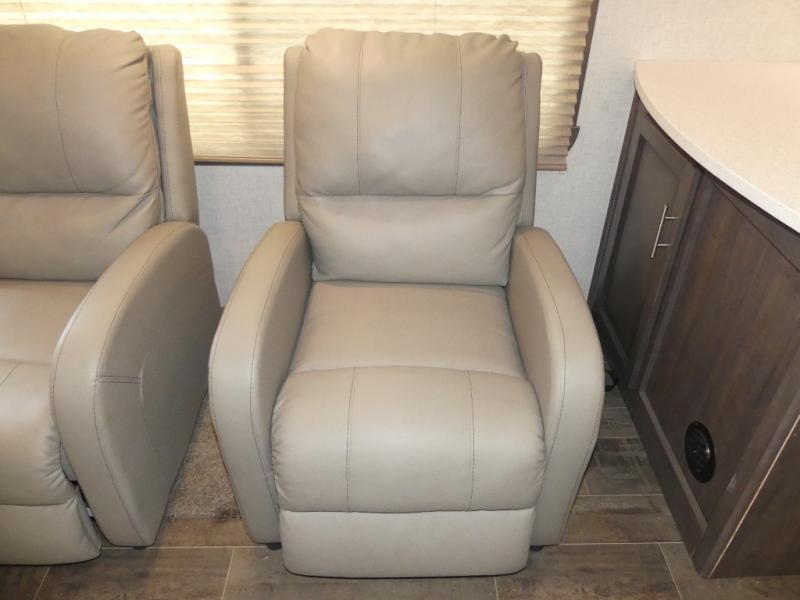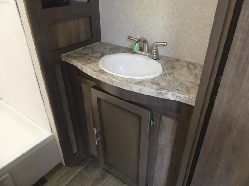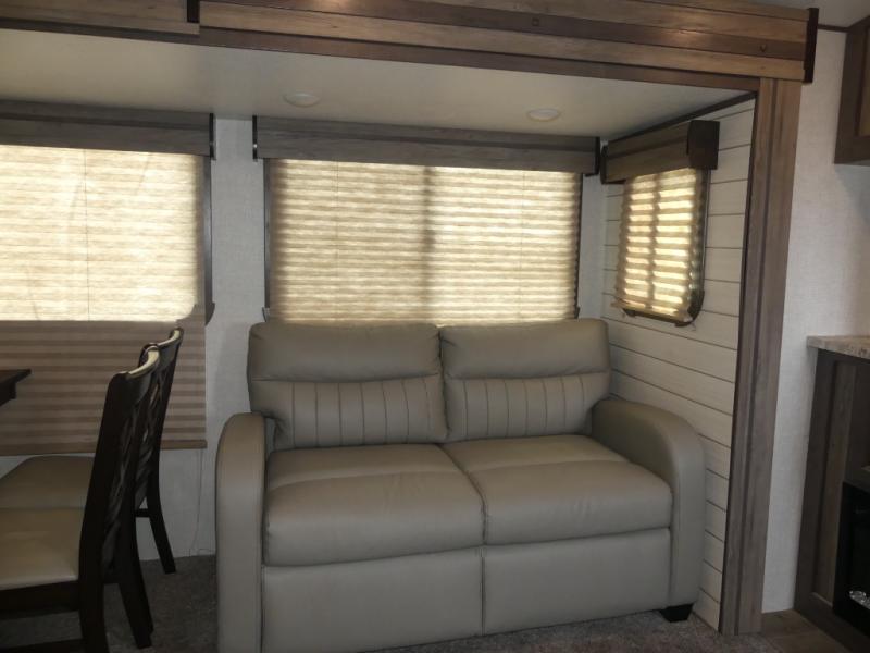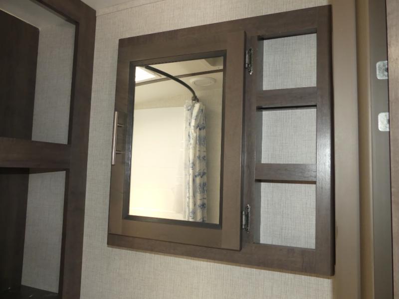 Eat, sleep, relax, and play all in this travel trailer features a large slide out for added interior space. There is plenty of seating choices, including dual lounge chairs, a theater seating, and a dinette. After you've worked up your appetite on a long bike ride, get cleaned up in the 30" x 36" shower then head outdoors to cook dinner on the outside camp kitchen. This model also includes a power awning with LED lights and outside speakers. So grab your camp chair and a cold drink from the outdoor refrigerator and enjoy some great company!