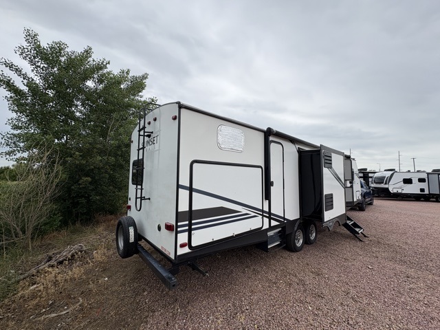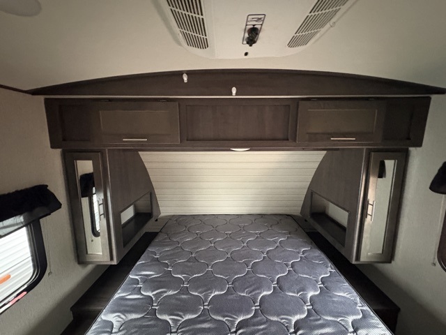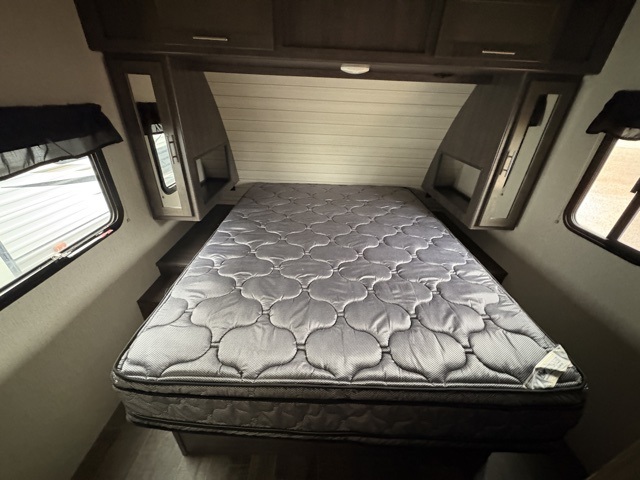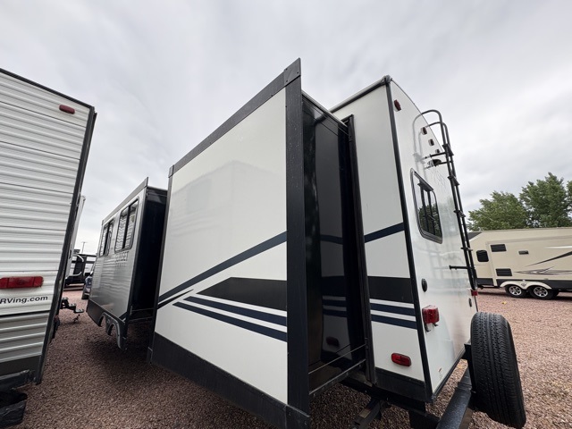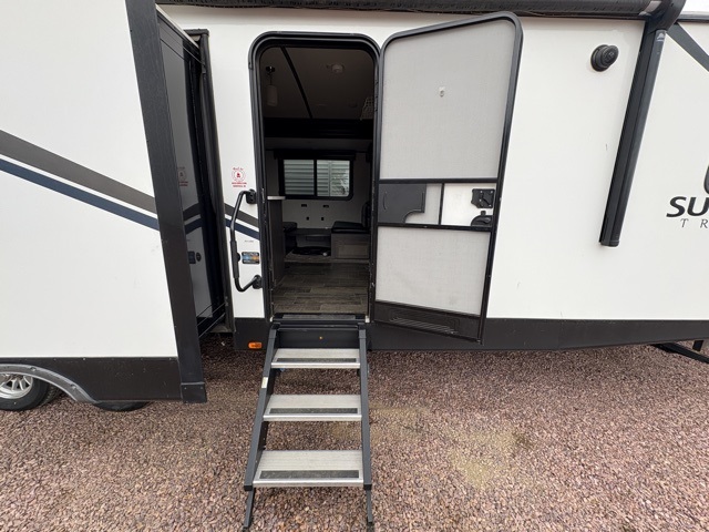 The Sunset Trail travel trailers by CrossRoads RV allow you to extend your camping season with the Extreme Weather Package that includes a reflective heat barrier, a heated and enclosed underbelly, and a 13,500 A/C. You'll enjoy many convenience features such as Keyed-A-Like locks, an HDMI Bluetooth stereo, solid doors to the bedroom, and cross ventilation slide windows that allow the fresh spring air in. These models also include Secure Stance entry steps, a ground stable structure with a 500 lb. weight rating that is adjustable and self-storing to make camping even easier, and you can choose the optional 50 AMP service over the 30 AMP standard.